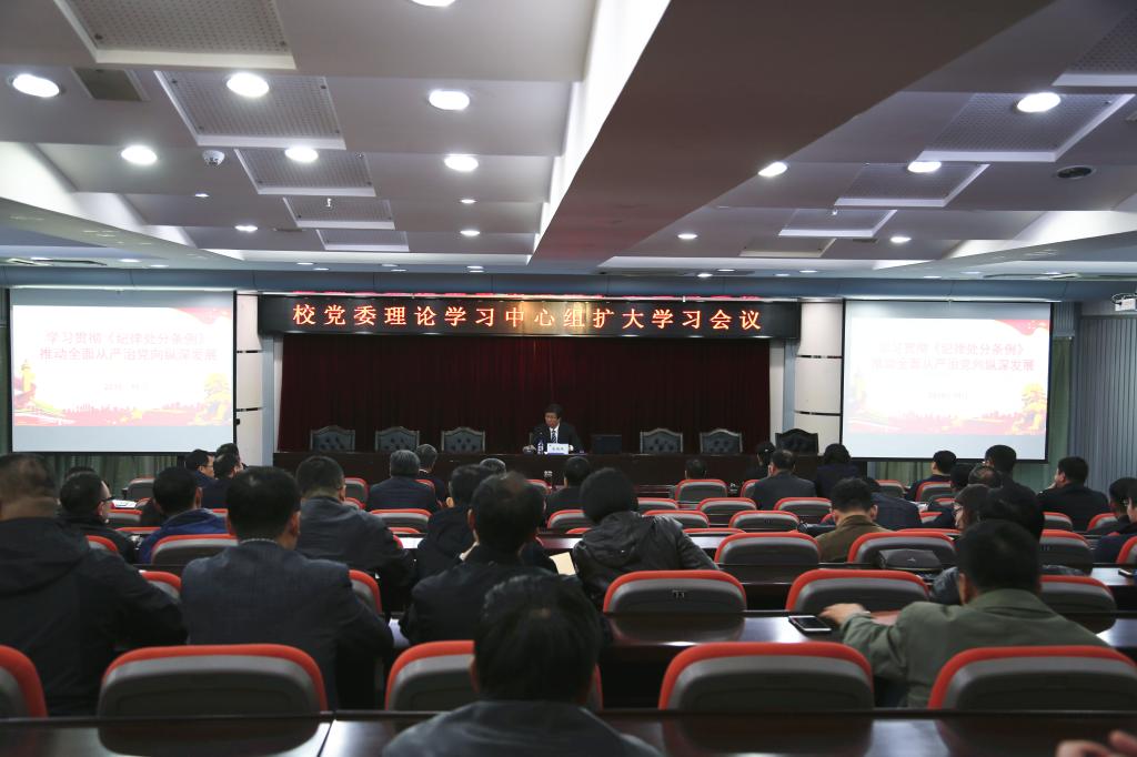 10月17日下午,乐鱼官网网页版_乐鱼(中国)官方在第一报告厅召开校党委理论学习中心组扩大学习会议,专题学习中央新修订颁布的《中国共产党纪律处分条例》。党委书记潘福林主持会议并讲话。