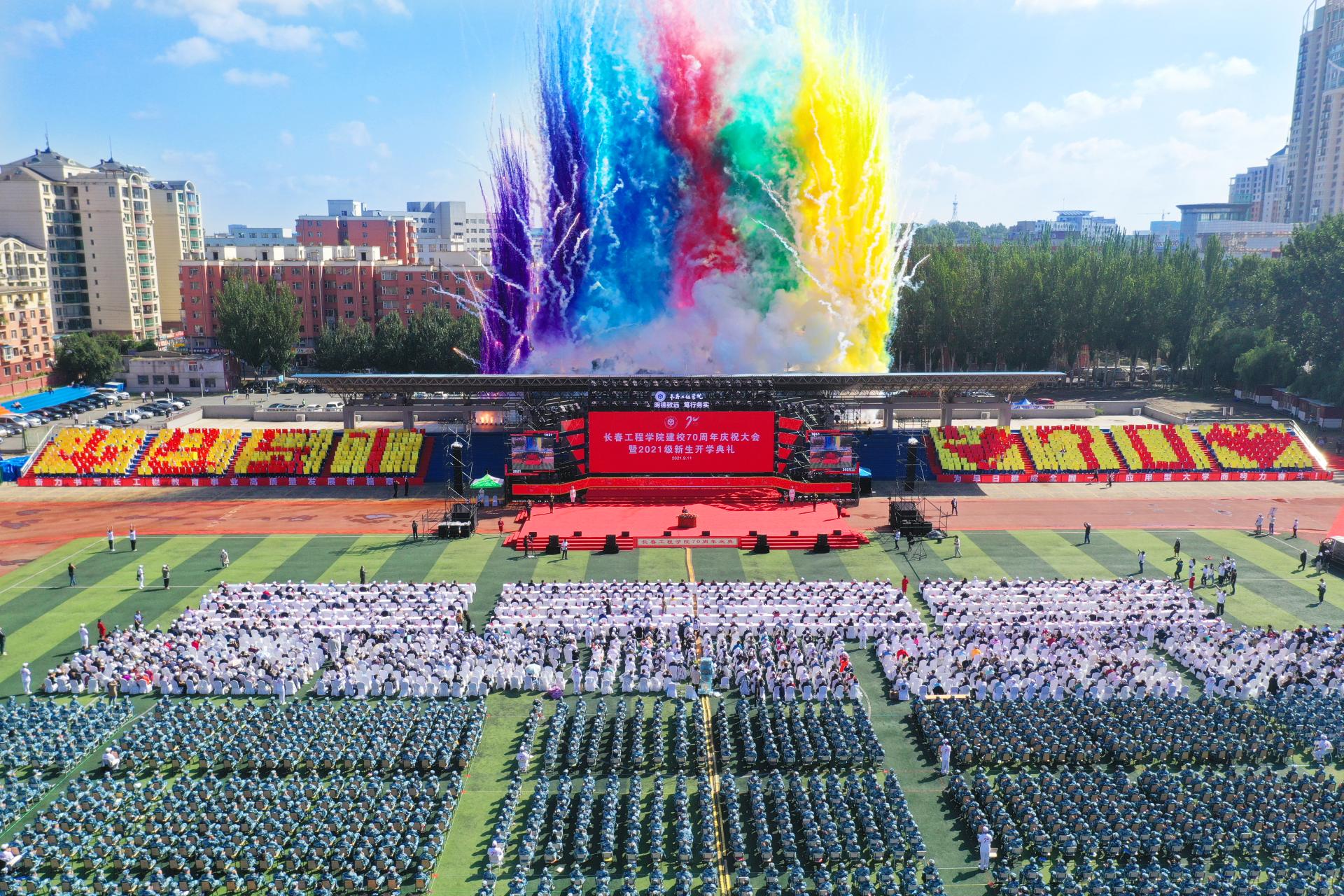 9月11日,乐鱼官网网页版_乐鱼(中国)官方建校70周年庆祝大会暨2021级新生开学典礼在湖西校区体育场隆重举行。