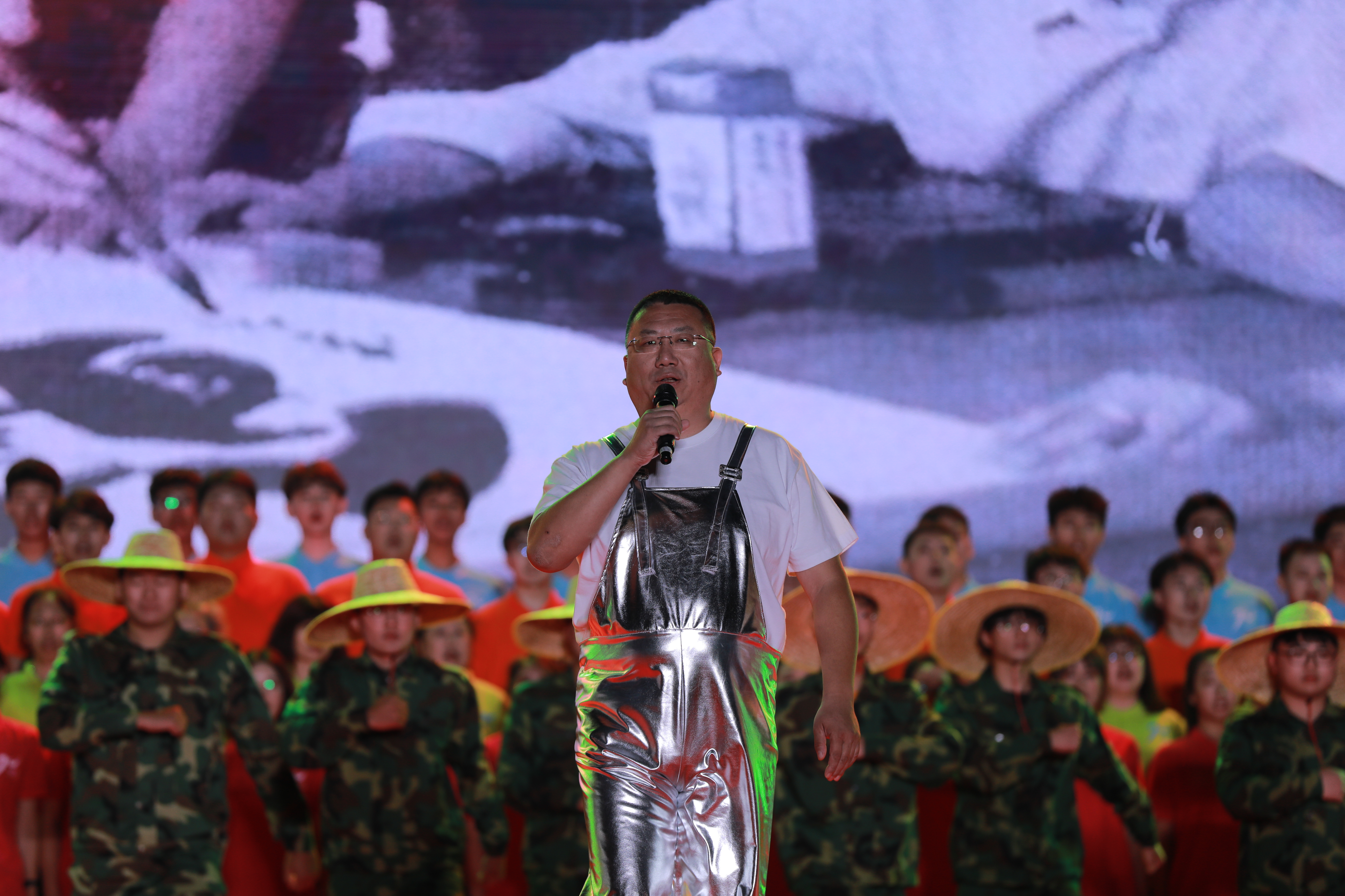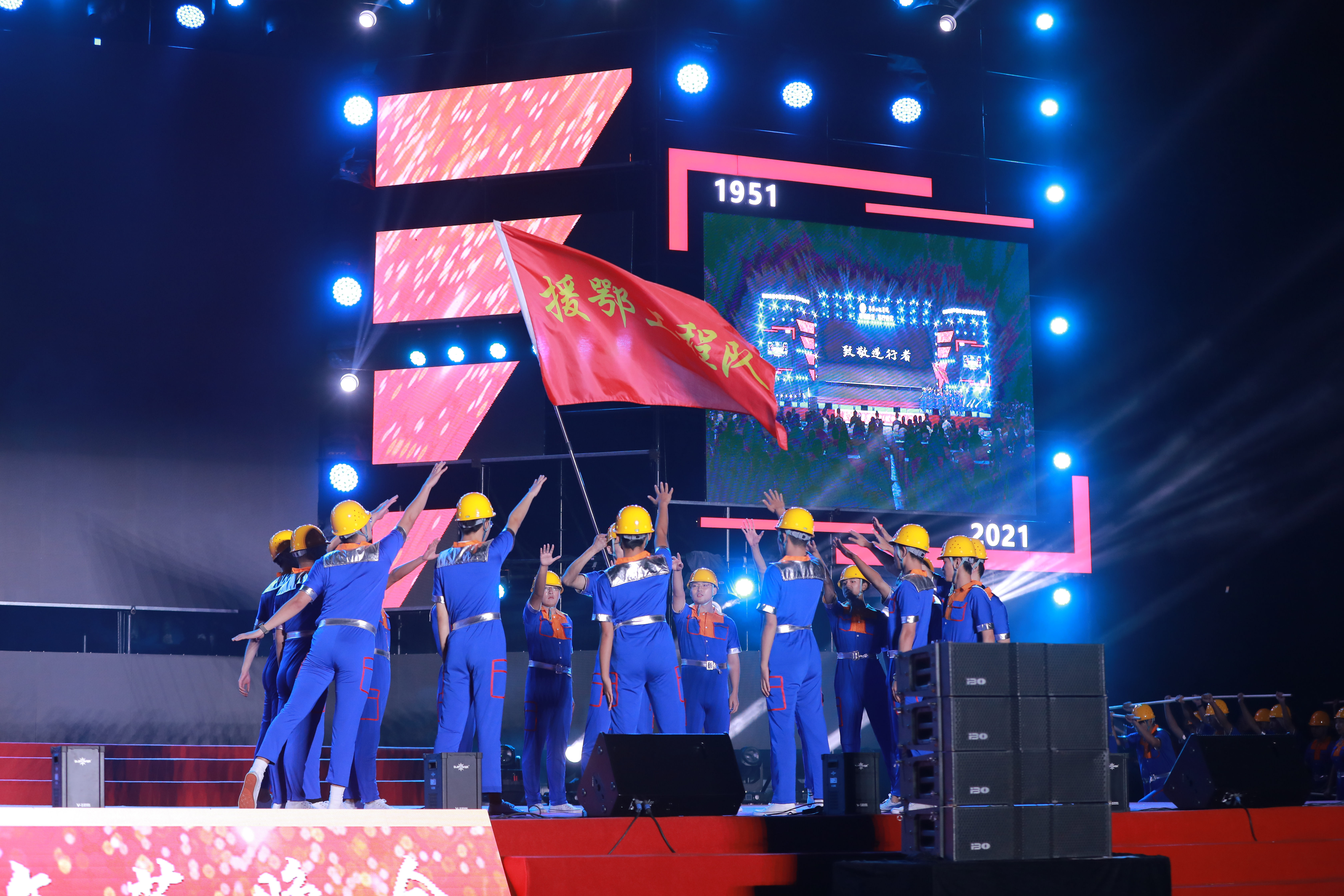 ▲情景歌曲《同筑长工程》以组歌——《建筑工人之歌》《勘探队员之歌》《水利水电之歌》《同筑长工程》描绘了时代浪潮中,充满自信与活力的长工程师生形象