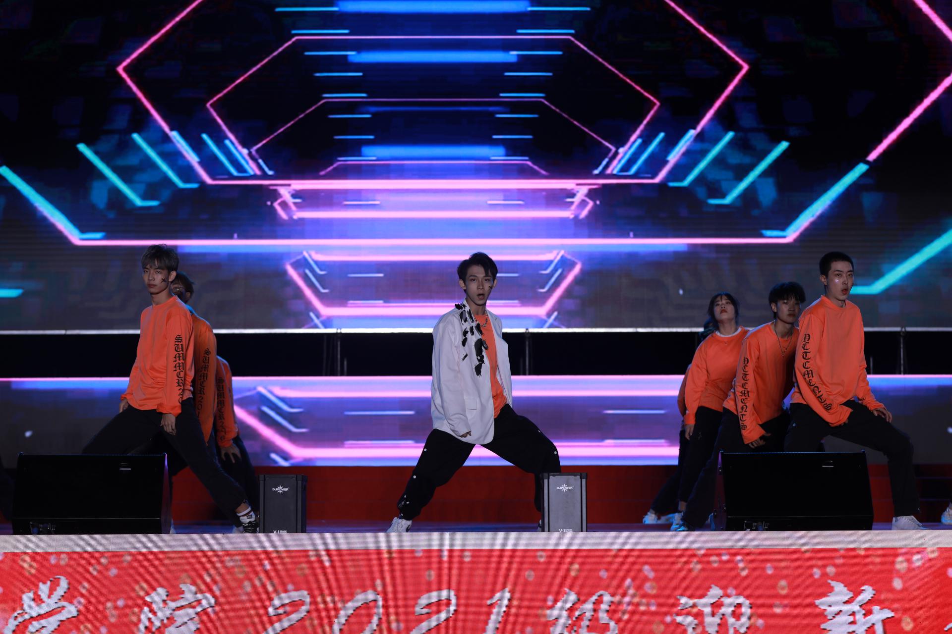 ▲开场舞《青春畅想》拉开演出的帷幕,演员用酣畅淋漓的舞姿为现场师生掀开一幕幕动人的篇章