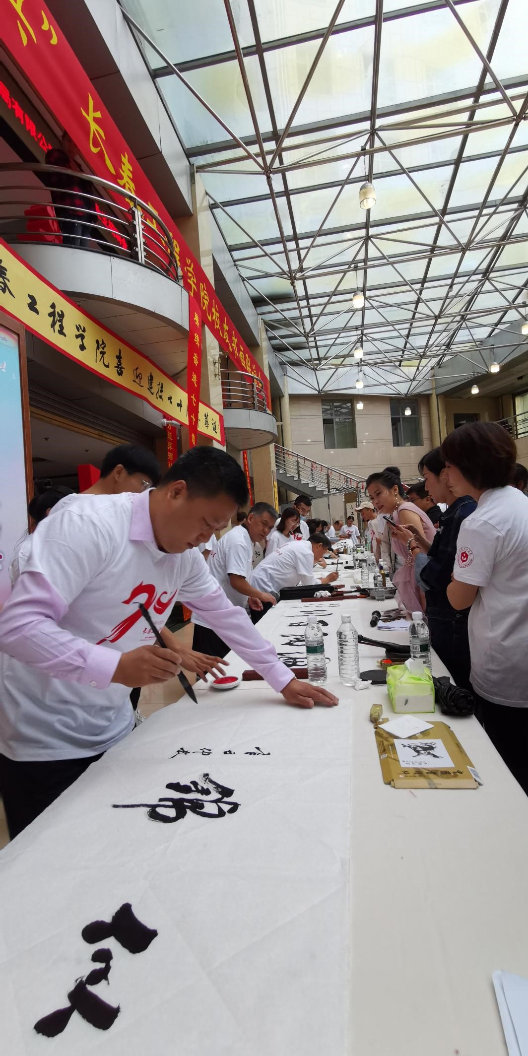 隽永如水,笔墨生辉。此次活动的作品内容丰富、风格各异,有浑然古朴的篆隶,有端庄隽秀的楷书,有行云流水的行书,有飞龙舞凤的草书,可谓百花齐放、异彩纷呈。绘画作品内容涉及山水、花鸟等多种题材,笔墨淋漓、色彩斑斓,具有很强的观赏性和感染力。这些作品都体现了书画家爱党爱国,歌颂美好生活的高尚情怀;凝聚了书画家们关心支持文化事业的深情厚谊,也是所有书画家用心血和汗水留给文化界的宝贵的精神财富。本次书画联谊会,既体现了全校师生、广大校友对中华优秀传统文化的继承和弘扬,又充分展示了我校文化育人的新格局。