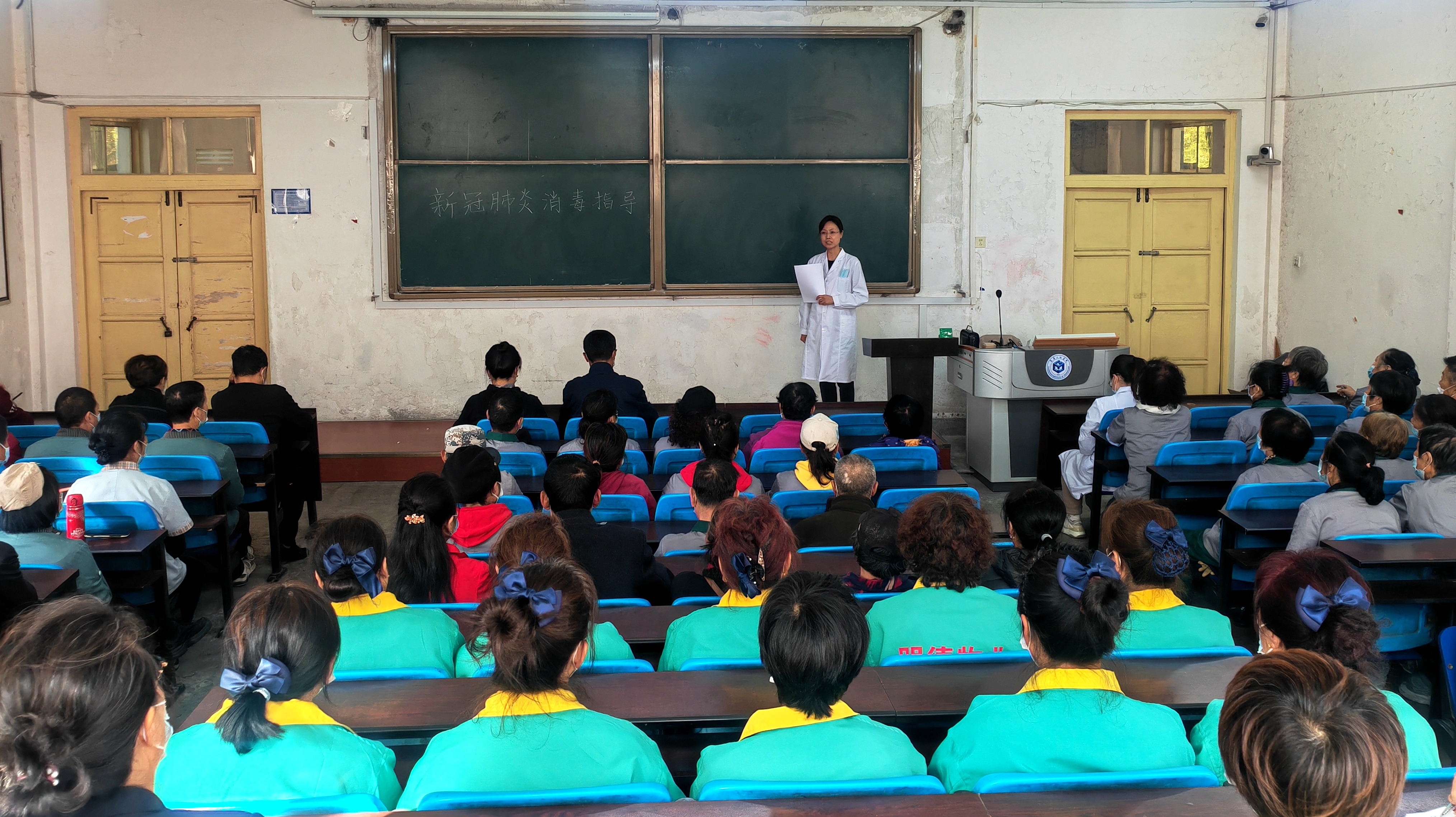 校医院副院长王姝从消杀的必要性、消杀过程中的个人防护、消毒液的配比、使用及消杀的注意事项等方面做了讲解,例举了食堂、学生公寓等校内公共场所防疫消杀措施及垃圾如何处理;秋冬季是诺如病毒的高发季,王姝院长介绍了此病的传播途径、临床表现、防治方法等相关知识。学生公寓、饮食中心、校园中心的管理人员以及负责乐鱼官网网页版_乐鱼(中国)官方公共区域卫生的保洁人员和饮食中心工作人员参加培训。