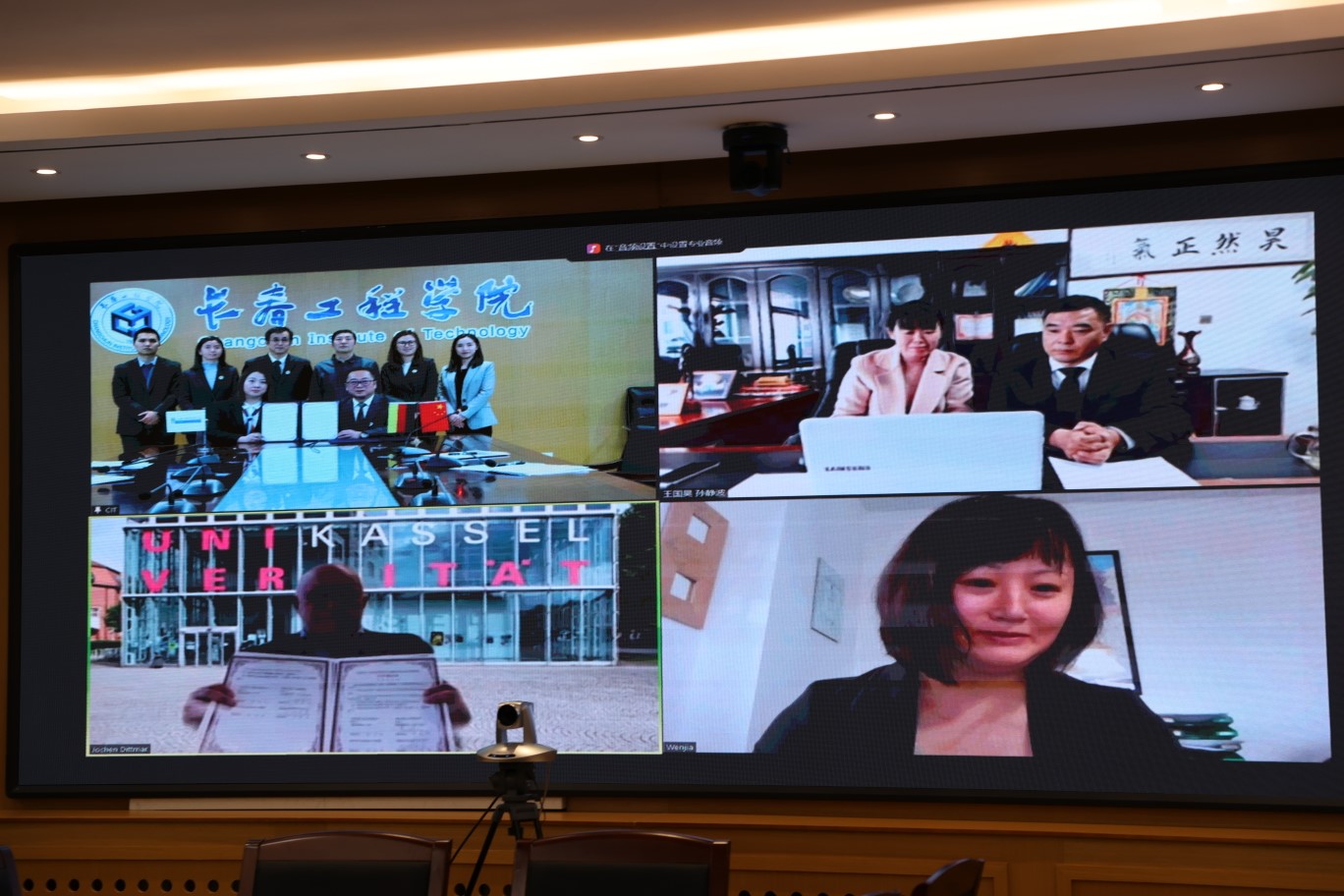 1月14日下午,我校管理学院与德国卡塞尔大学管理学院合作签约仪式在乐鱼官网网页版_乐鱼(中国)官方第二会议室举行。受疫情影响,本次签约仪式采用线上线下相结合的方式进行。
