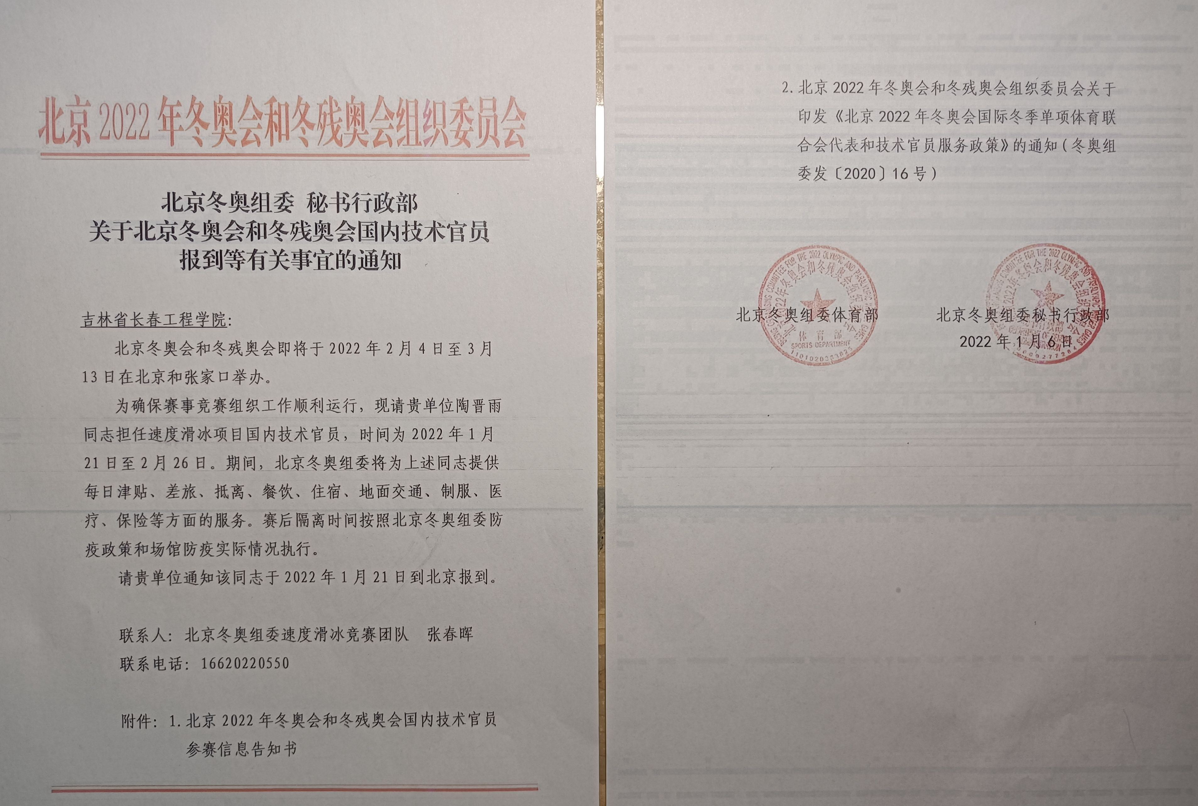 万众瞩目的北京2022冬奥会和冬残奥会即将开幕,受北京冬奥组委体育部选派,我校体育教研部教师陶晋雨将担任北京2022冬奥会速度滑冰项目的国内技术官员,为冬奥会圆满举办贡献“长工程力量”。