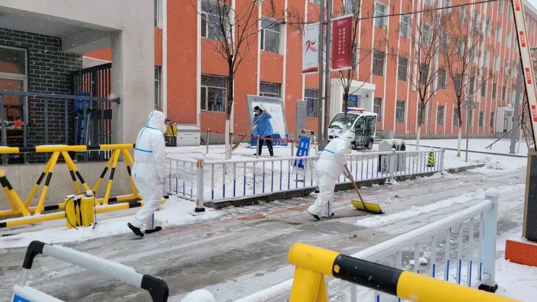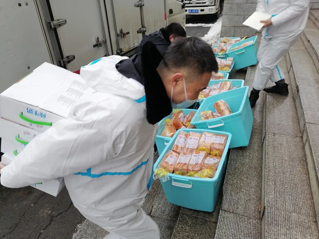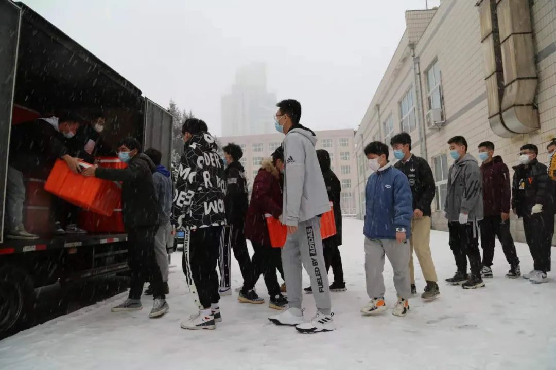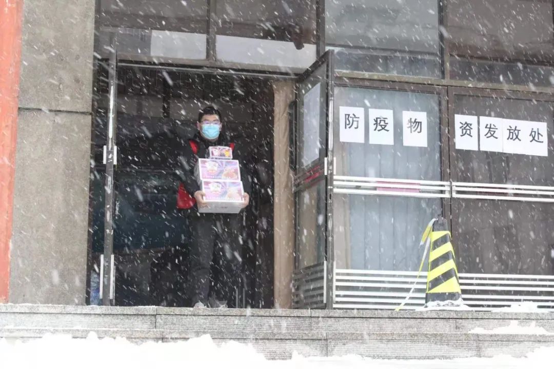 志愿者们不畏艰险、不辞辛劳,每天为隔离封寝的学生们送上热腾腾的饭菜。笨重的防护衣,雪地上蹒跚的脚步,都阻止不了他们成为温暖的“大白”。