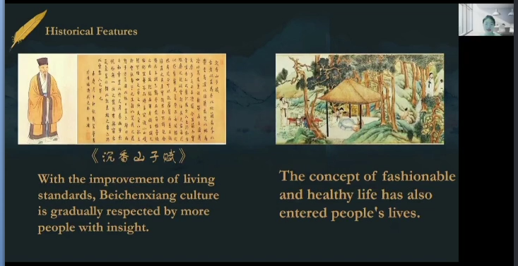 在接下来的联合赛区微视频创作比拼中,我校选手积极向世界推介具有东北地方特色的非物质文化遗产“北沉香木雕”。在视频中同学们从北沉香木雕的加工方式、宣传方式、商业模式、销售模式等方面深入探讨了北沉香木雕拓展海外市场的方式。