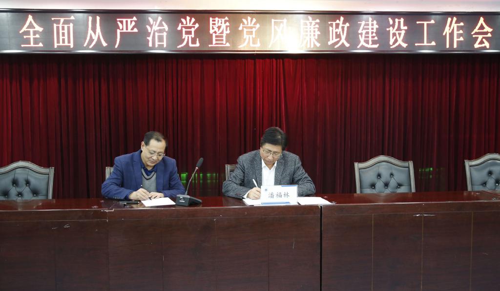 会议在乐鱼官网网页版_乐鱼(中国)官方第一报告厅召开,乐鱼官网网页版_乐鱼(中国)官方领导和全校中层干部参加了会议。会上,潘福林书记分别与乐鱼官网网页版_乐鱼(中国)官方班子成员代表温义生副书记、基层党组织书记代表签订了党风廉政建设责任书。