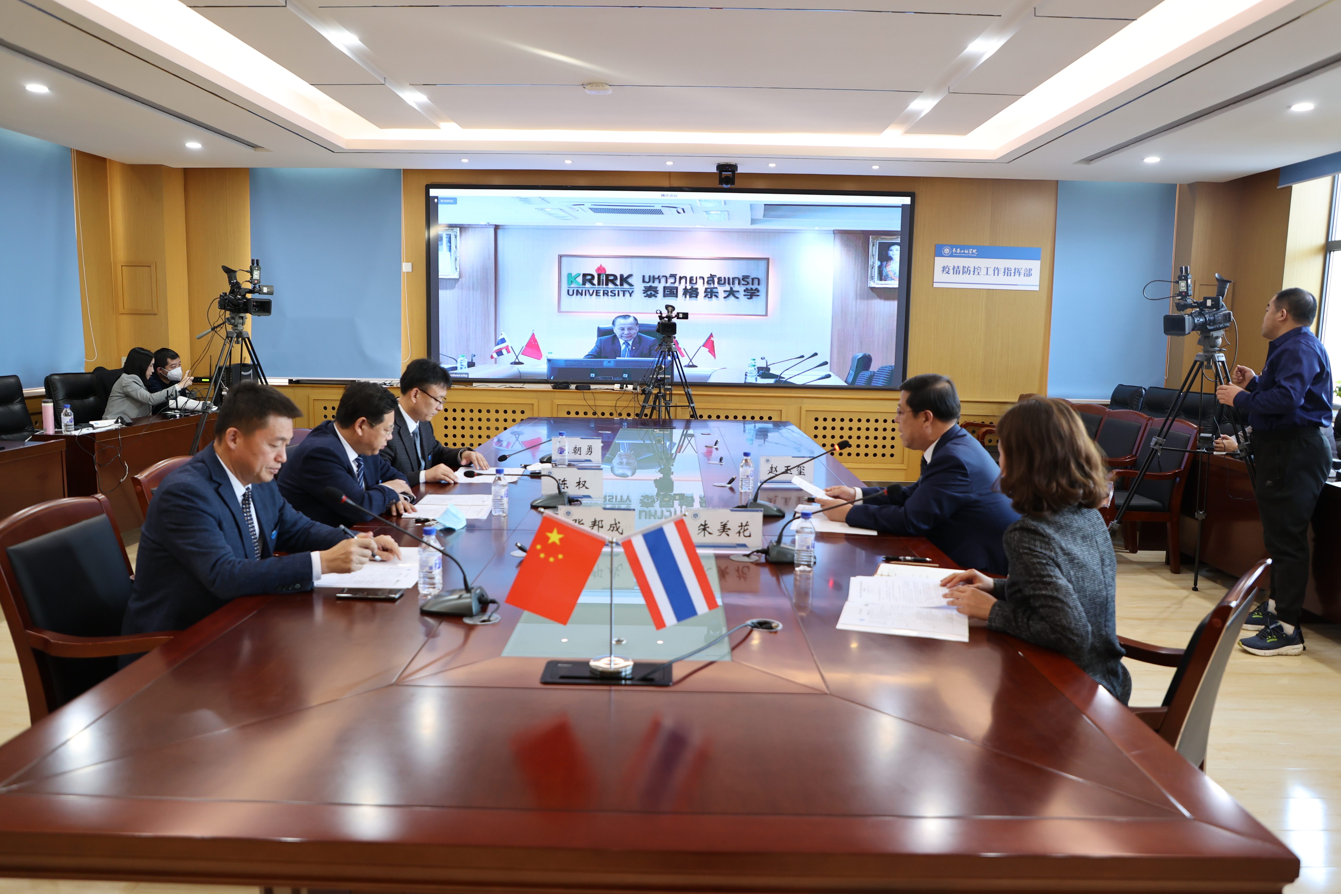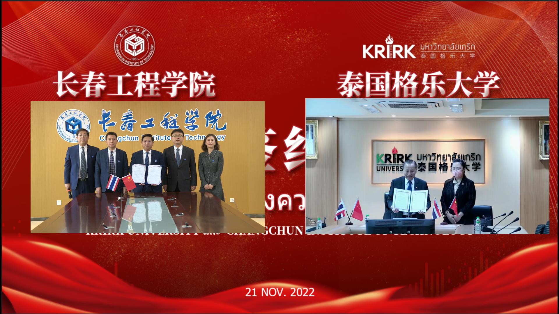 11月21日,我校与泰国格乐大学签署合作备忘录,就开展国际合作与交流事宜达成一致。签约仪式以视频会议的方式在我校和泰国格乐大学同步举行。
