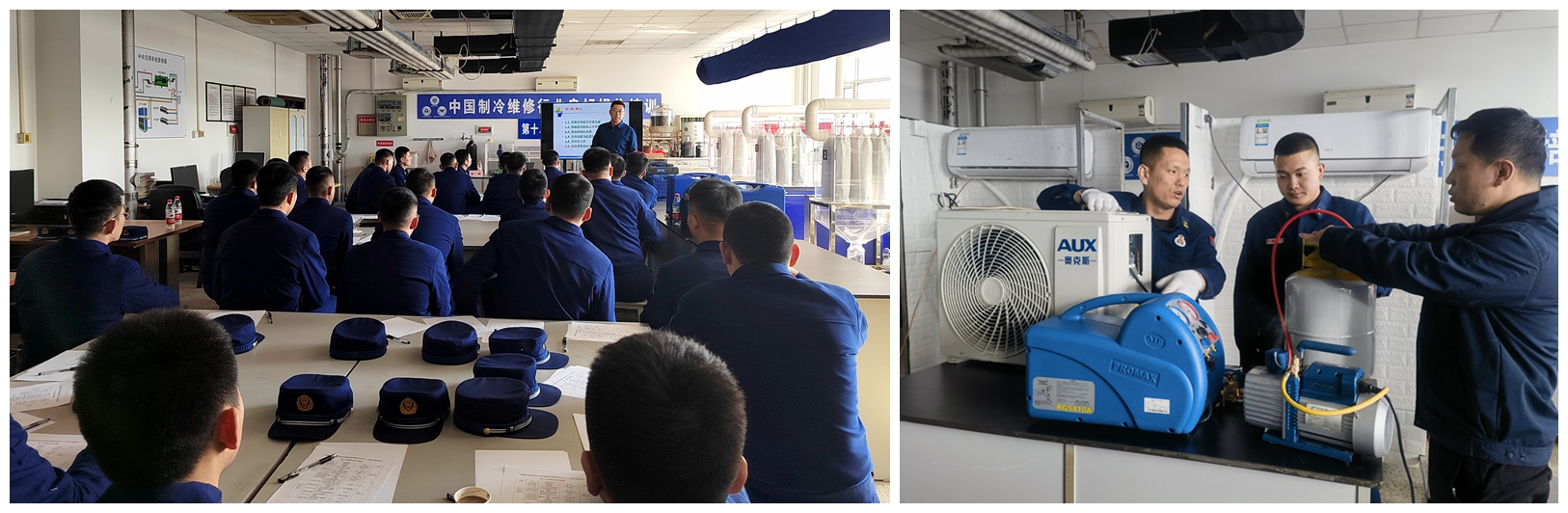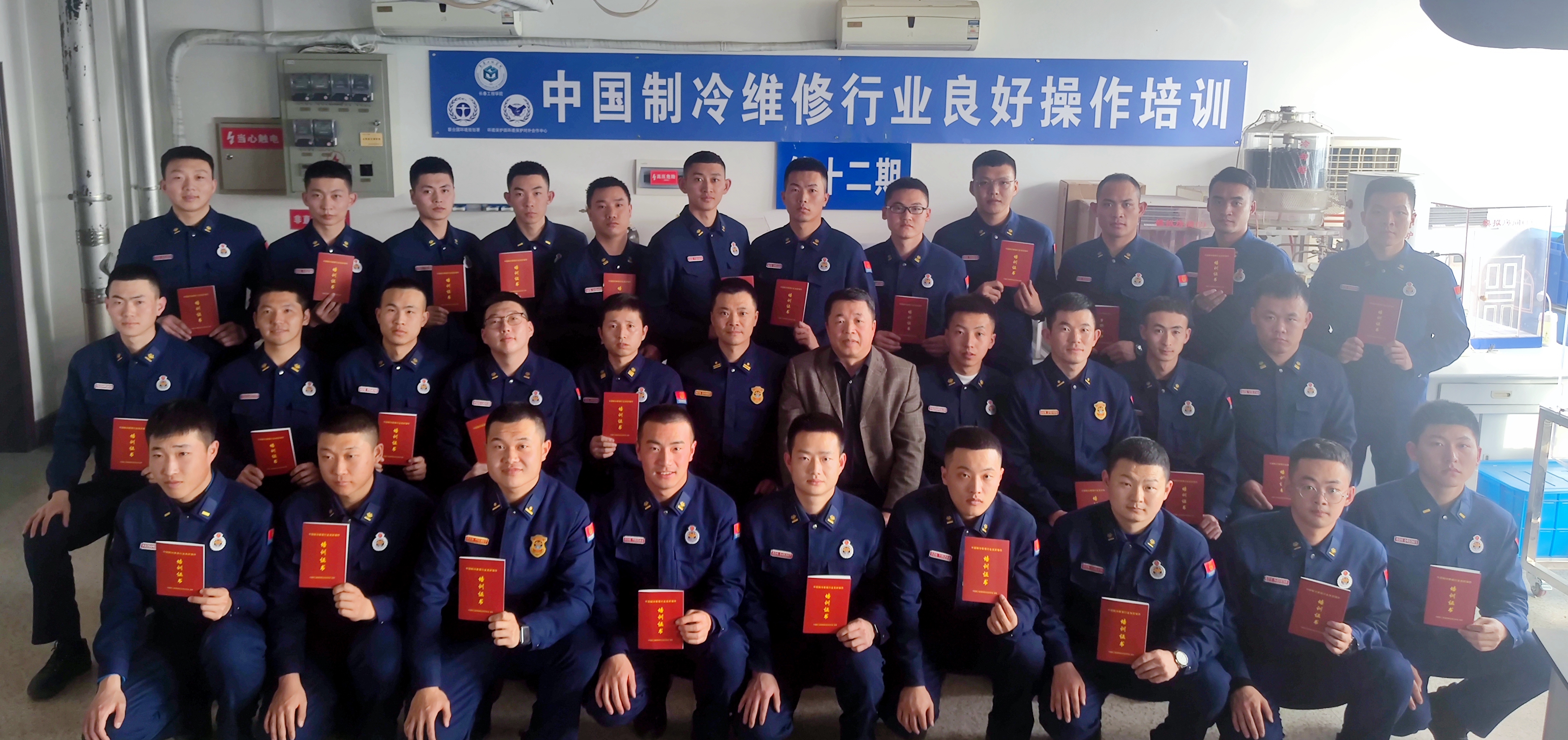 近日,我校应用技术学院和能源动力工程学院联合为吉林省森林消防总队的消防员进行了为期4天的制冷空调设备维修技术和技能培训,共有60名干部及消防员骨干参加此次培训。参培人员在培训中心深入学习了习近平生态文明思想,并就空调与热泵的基本原理、铜管焊接和冷连接基本操作、制冷剂充注和回收的良好操作、新型制冷剂防火安全知识等内容接受了具体培训。经考核合格后,项目负责人张志正教授为学员颁发了培训证书。