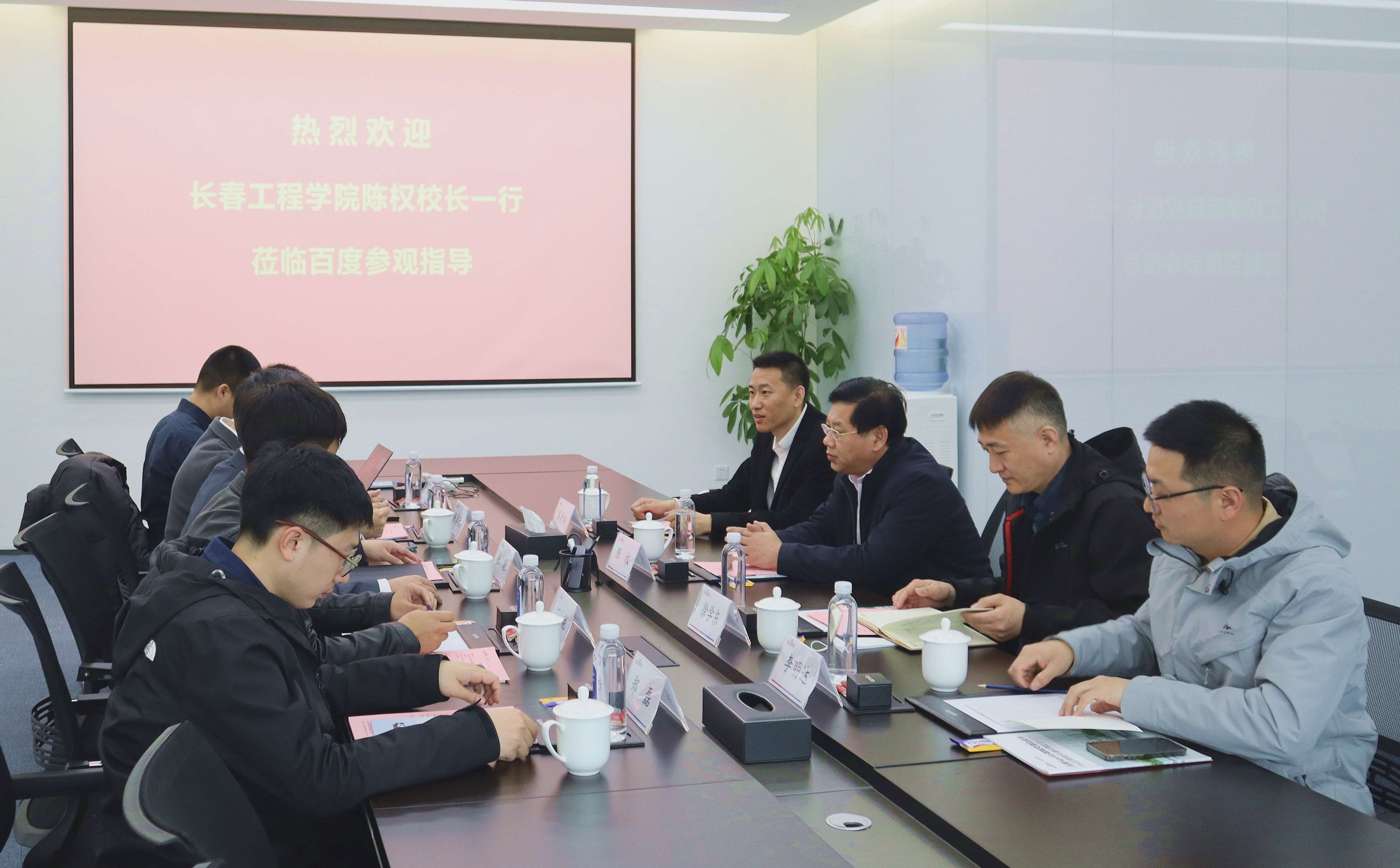 百度IDG人才生态总经理张弛代表公司对陈权校长一行的到访表示热烈欢迎,并详细介绍了百度4大事业群,百度智能网联业务的发展历程、主营业务,百度与高校合作推进新工科落地的主要模式等;百度IDG教育行业高级架构师赵国强介绍了共建智能汽车产业学院的行业背景,回顾了校企合作历程,并汇报了下一步工作计划。