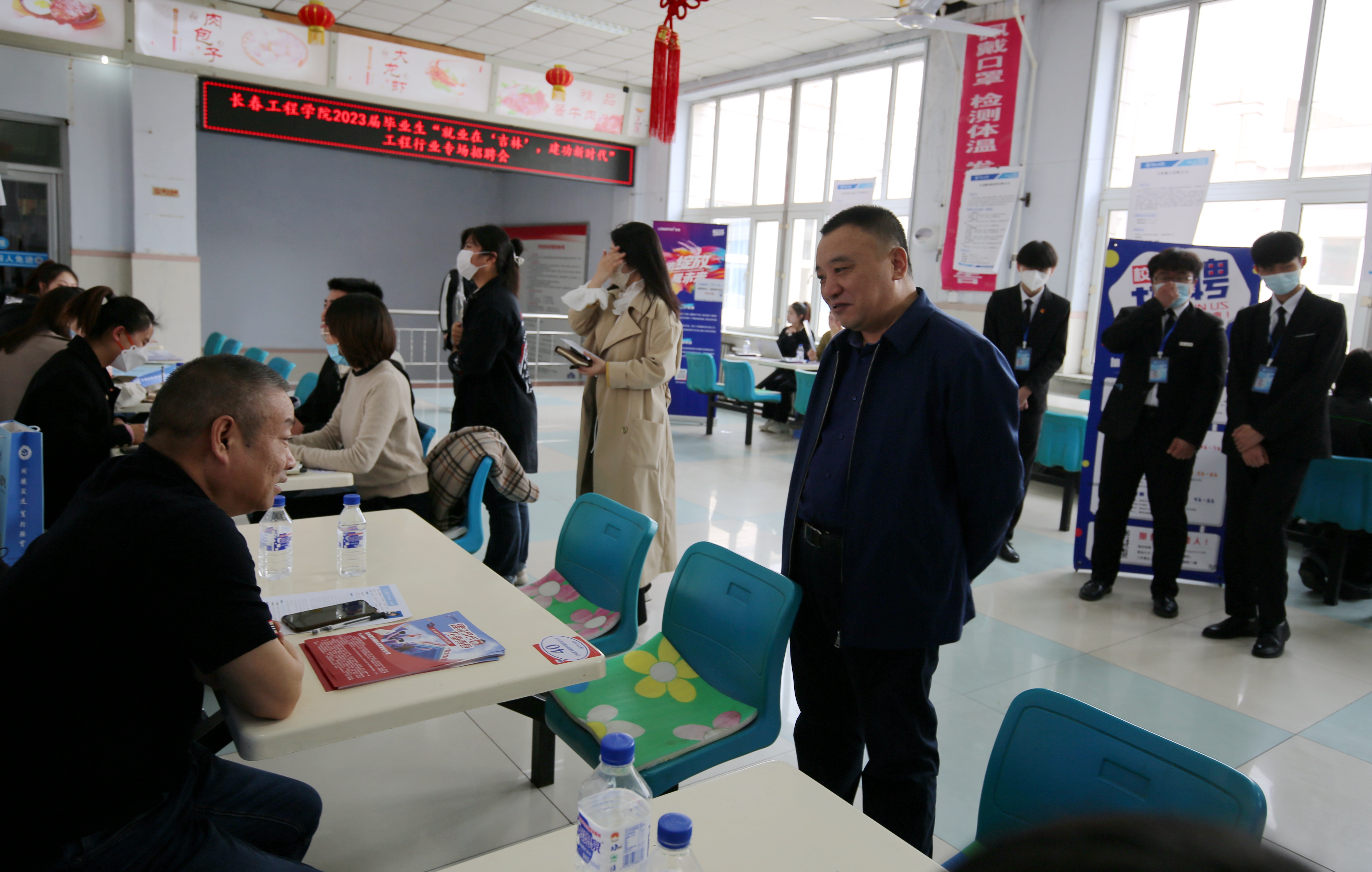 在专场招聘会上,共有80家用人单位到校招聘,其中吉林省内企业51家,共提供岗位4685个,涵盖了建筑、电力、能源,信息、通讯、汽车、房地产、地质等十余个行业,全校约1300名学生参加了招聘会。吉林省高校毕业生就业指导中心主任唐洪丰莅临招聘现场指导工作。