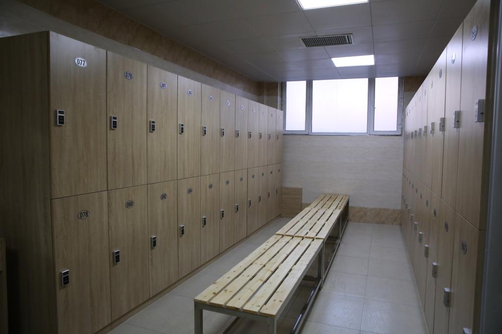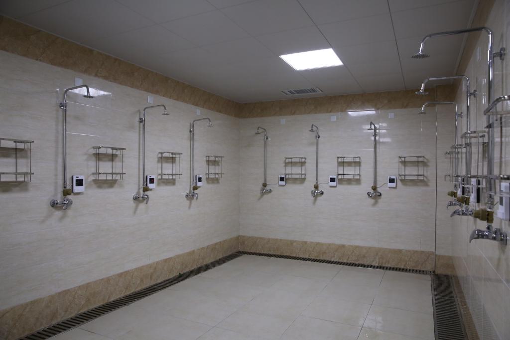 浴池位于学生八公寓一楼,总面积约560平方米,更衣箱248个(男152个,女96个),洗浴喷头149个(男99个,女50个)。洗浴实行智能化管理,师生持“一卡通”智能卡即可刷卡洗浴,电脑计时收费。