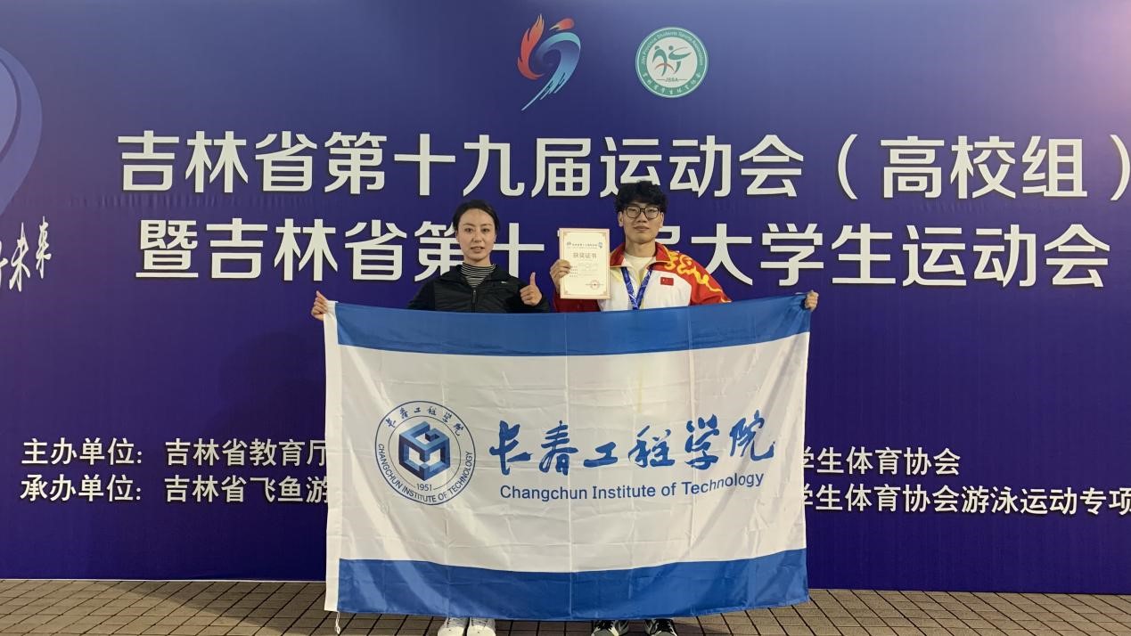 近日,在吉林省第十九届运动会(高校组)暨吉林省第十二届大学生运动会游泳比赛中,我校建筑学院常圣堃同学,在大学甲组男子50米蛙泳和100米蛙泳比赛中,分别以32''66和1'17''36的好成绩勇夺两枚金牌。