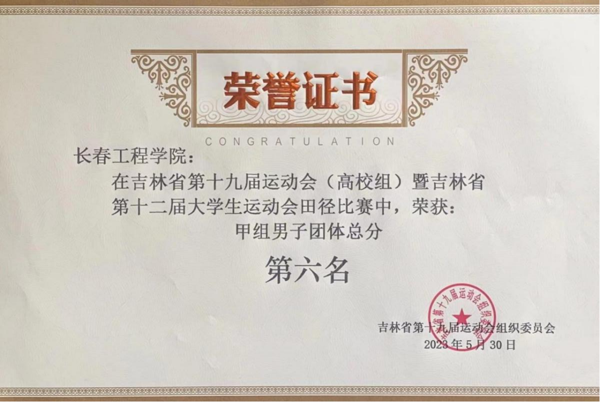 5月30日,经过四天的激烈角逐,吉林省第十九届运动会(高校组)暨吉林省第十二届大学生运动会田径比赛圆满落下帷幕。我校学生获得甲组男子团体总分第六名,其中,电气与信息工程学院喻勤同学以1.90米的成绩获得金牌并打破了省运会跳高记录;计算机技术与工程学院张枫同学获得5000米银牌;电气与信息工程学院喻勤同学获得110米栏铜牌。