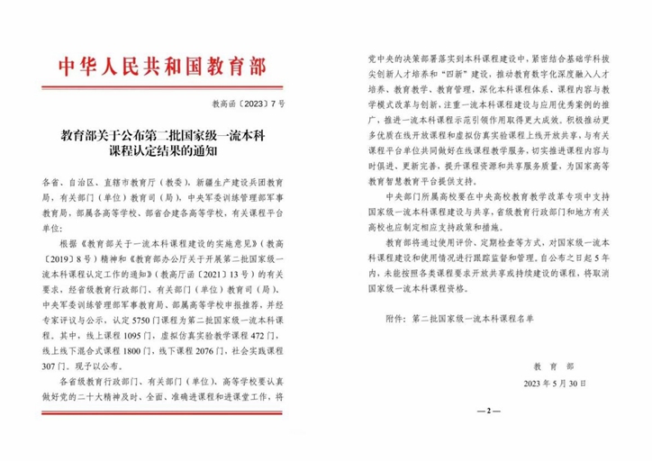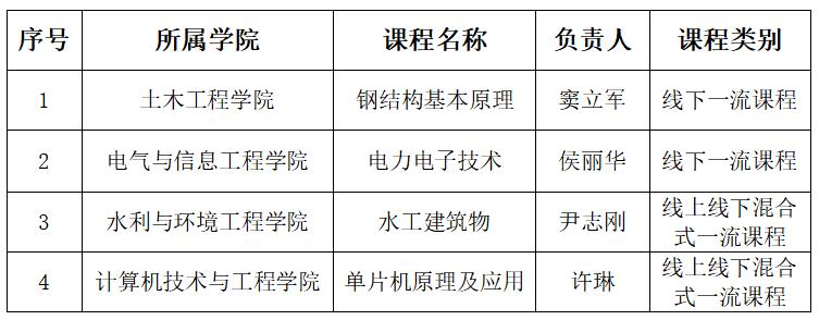 近日,教育部公布了第二批国家级一流本科课程认定结果,我校共有4门课程被认定为国家级一流本科课程,其中线下一流课程2门,分别为《钢结构基本原理》《电力电子技术》;线上线下混合式一流课程2门,分别为《水工建筑物》《单片机原理及应用》。本次获批国家级一流本科课程实现了乐鱼官网网页版_乐鱼(中国)官方一流课程建设的历史性突破,体现了乐鱼官网网页版_乐鱼(中国)官方在课程建设方面取得的新成效。