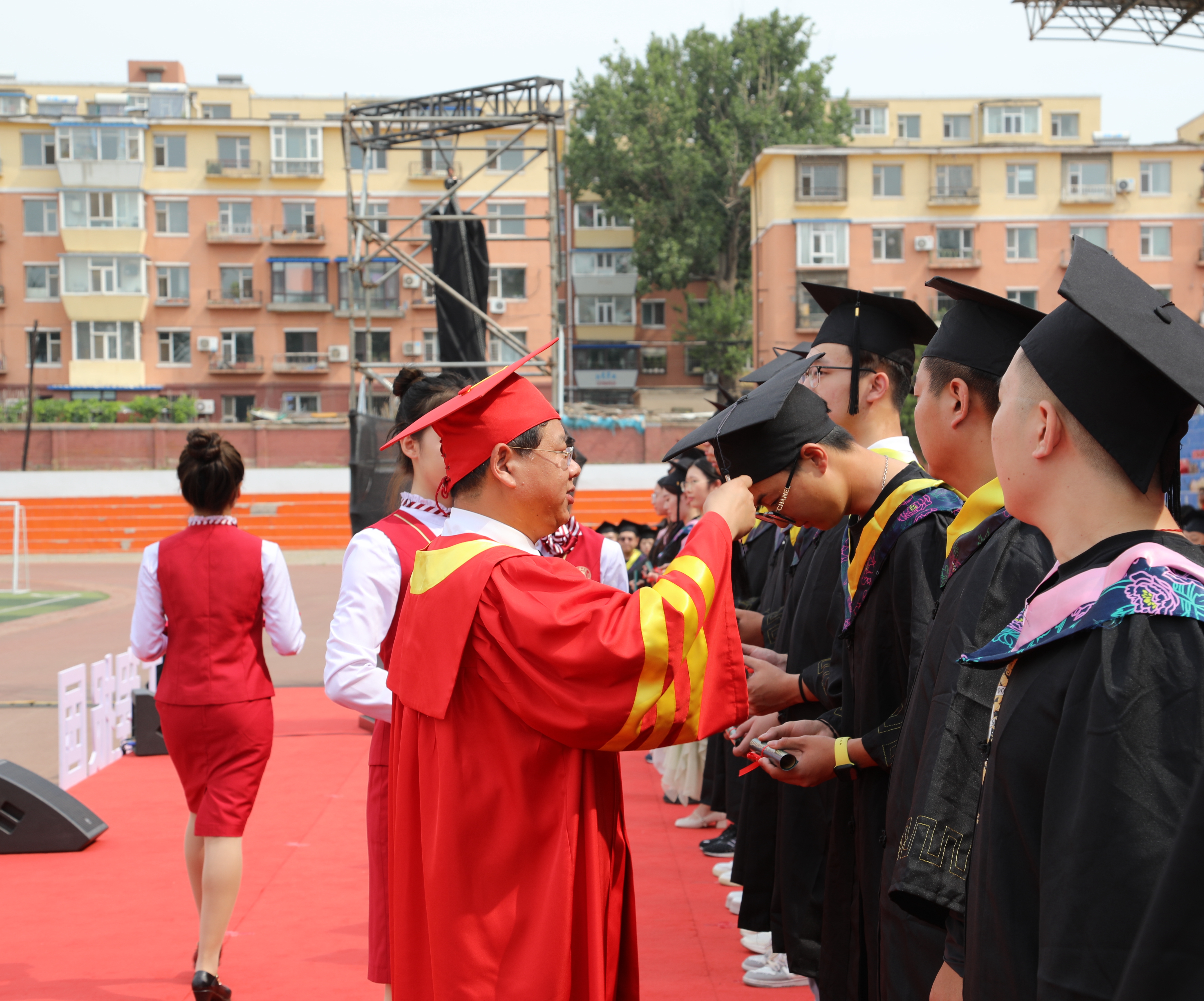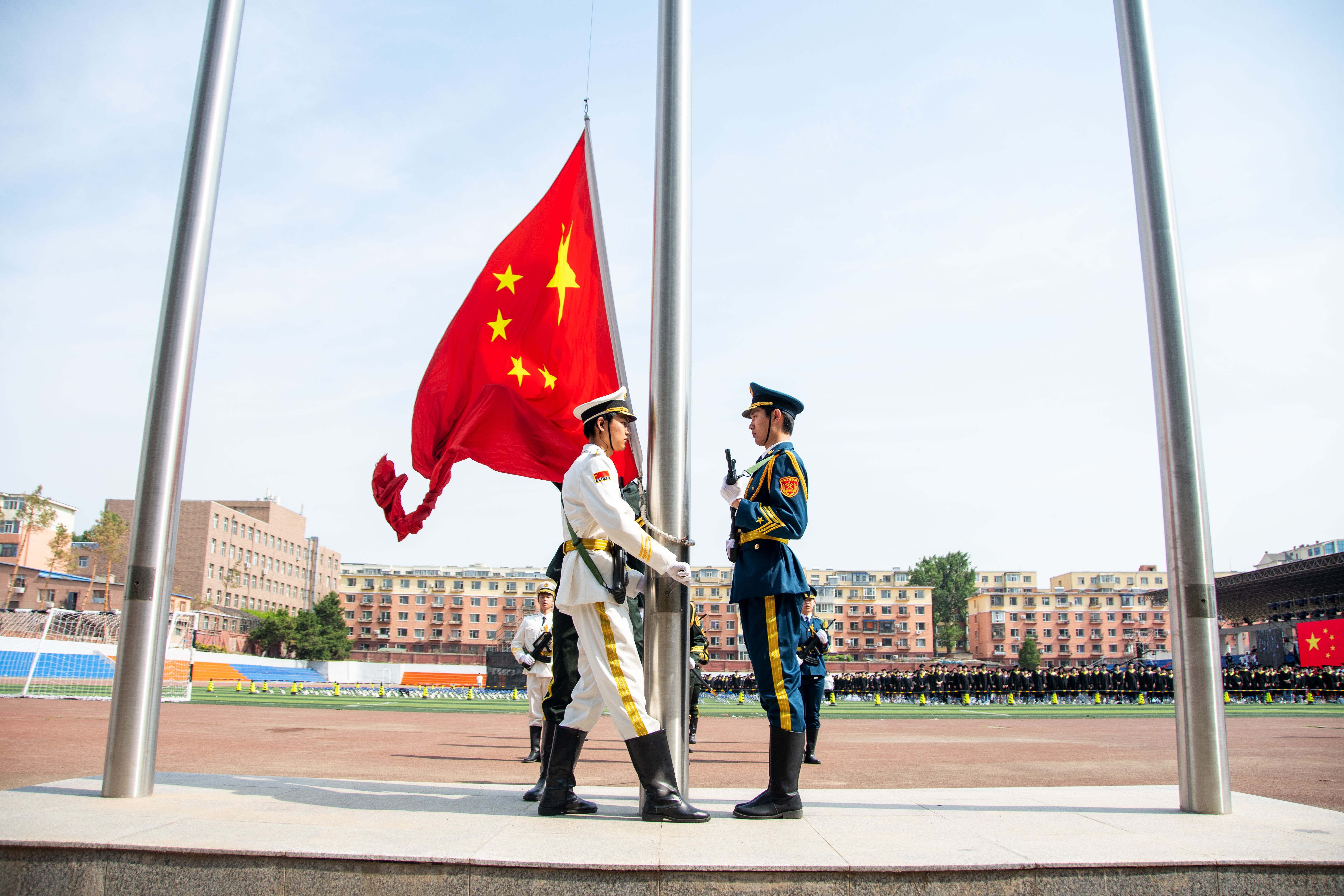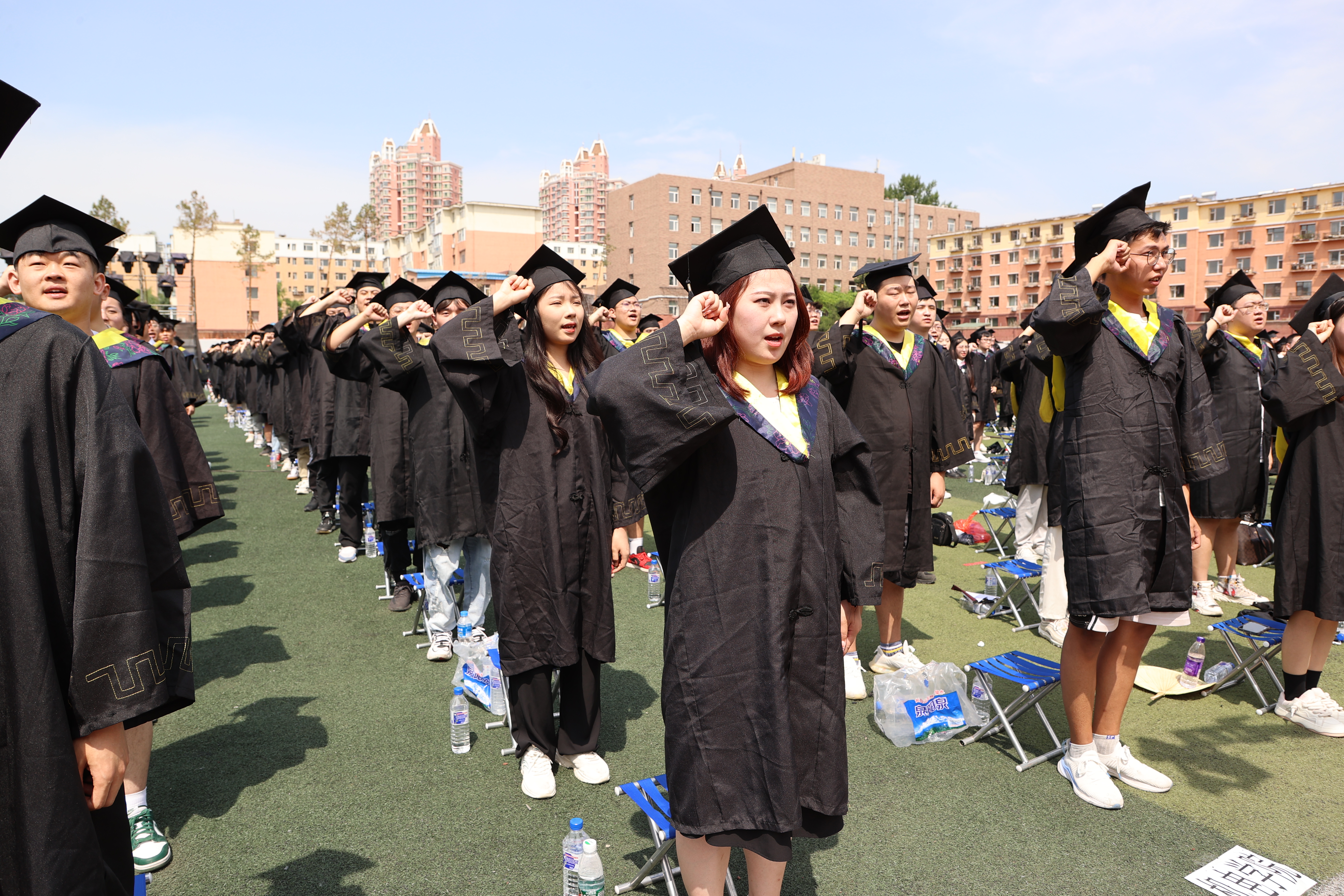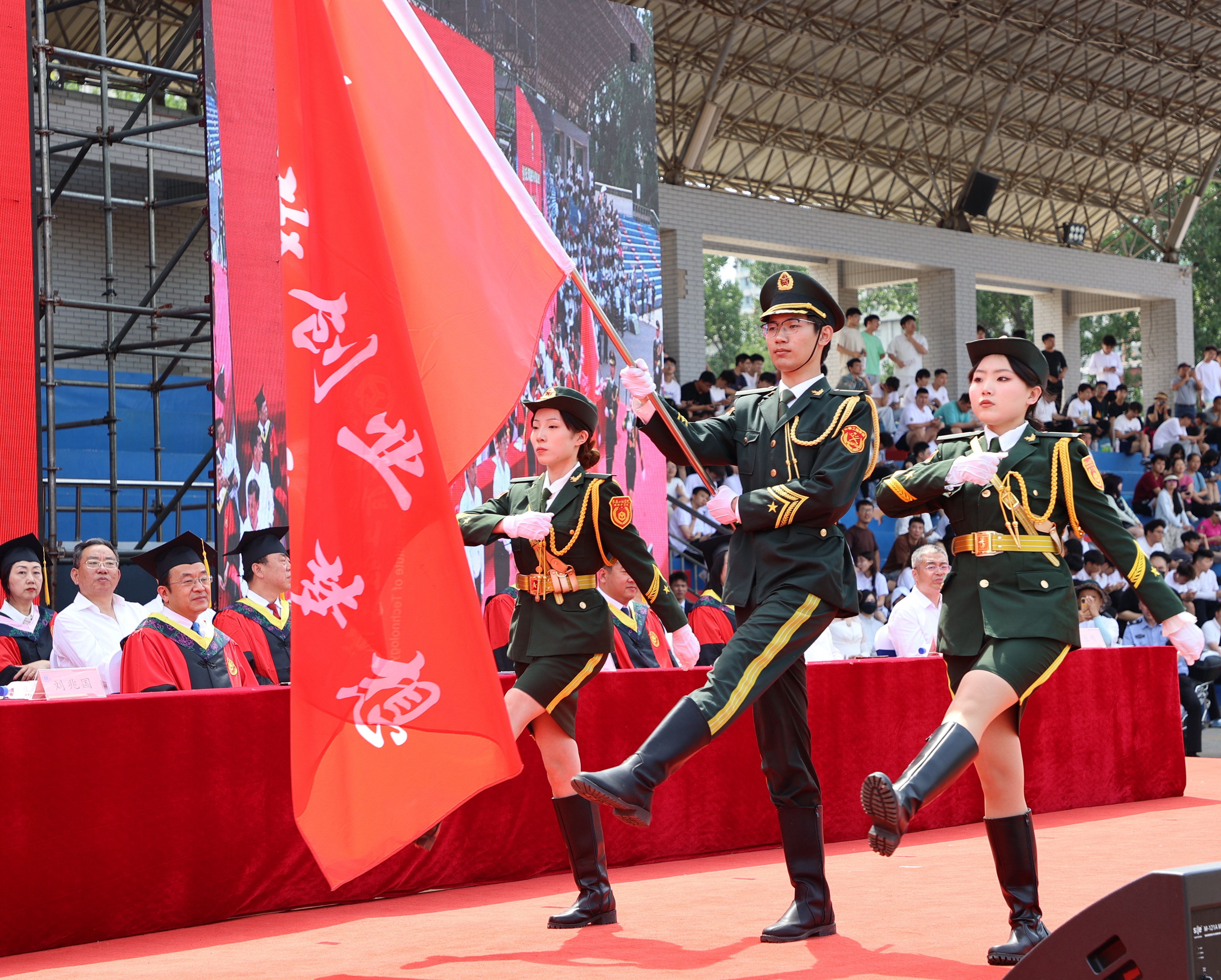 在庄严肃穆的《义勇军进行曲》中,毕业典礼正式开始。