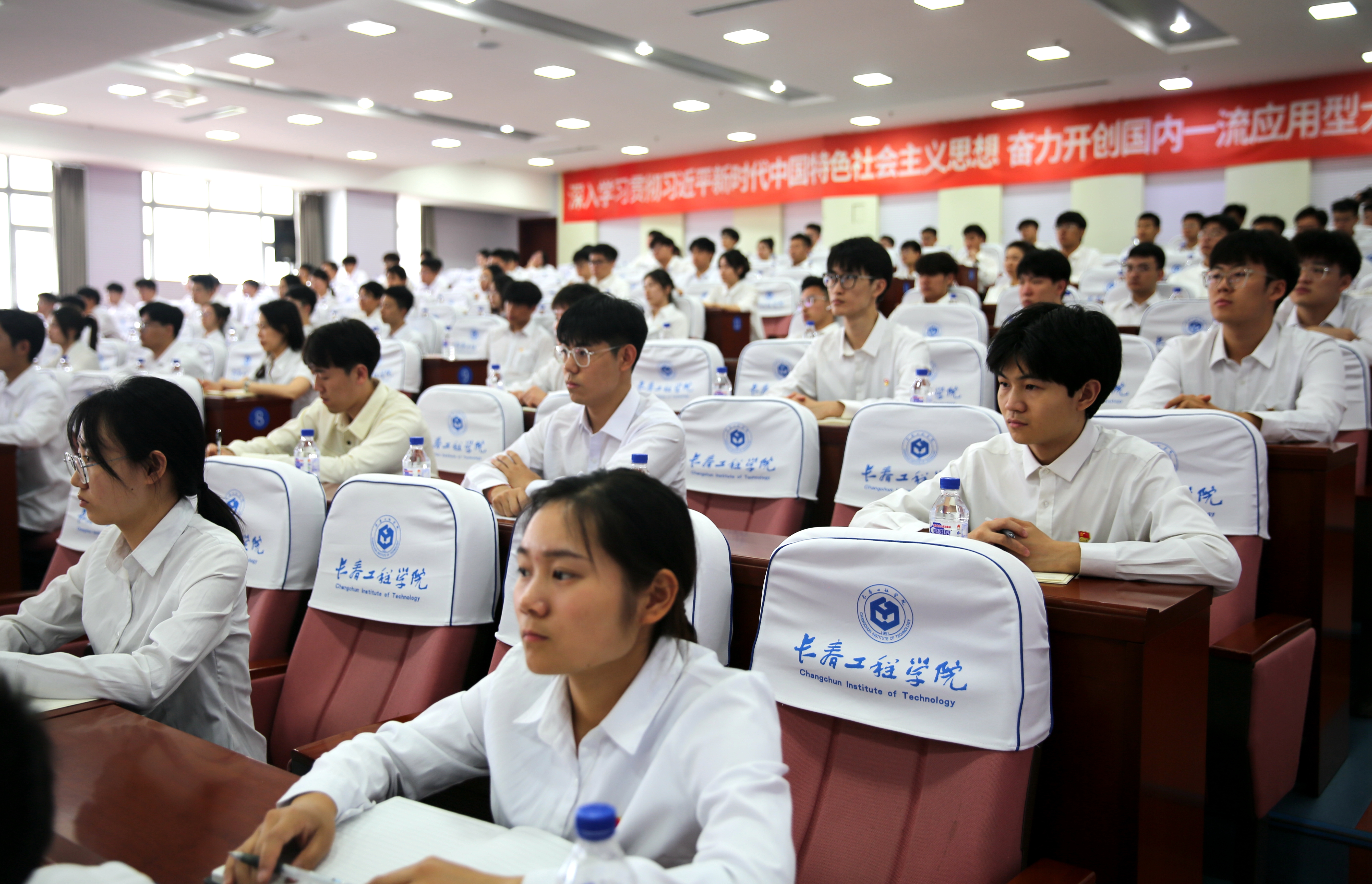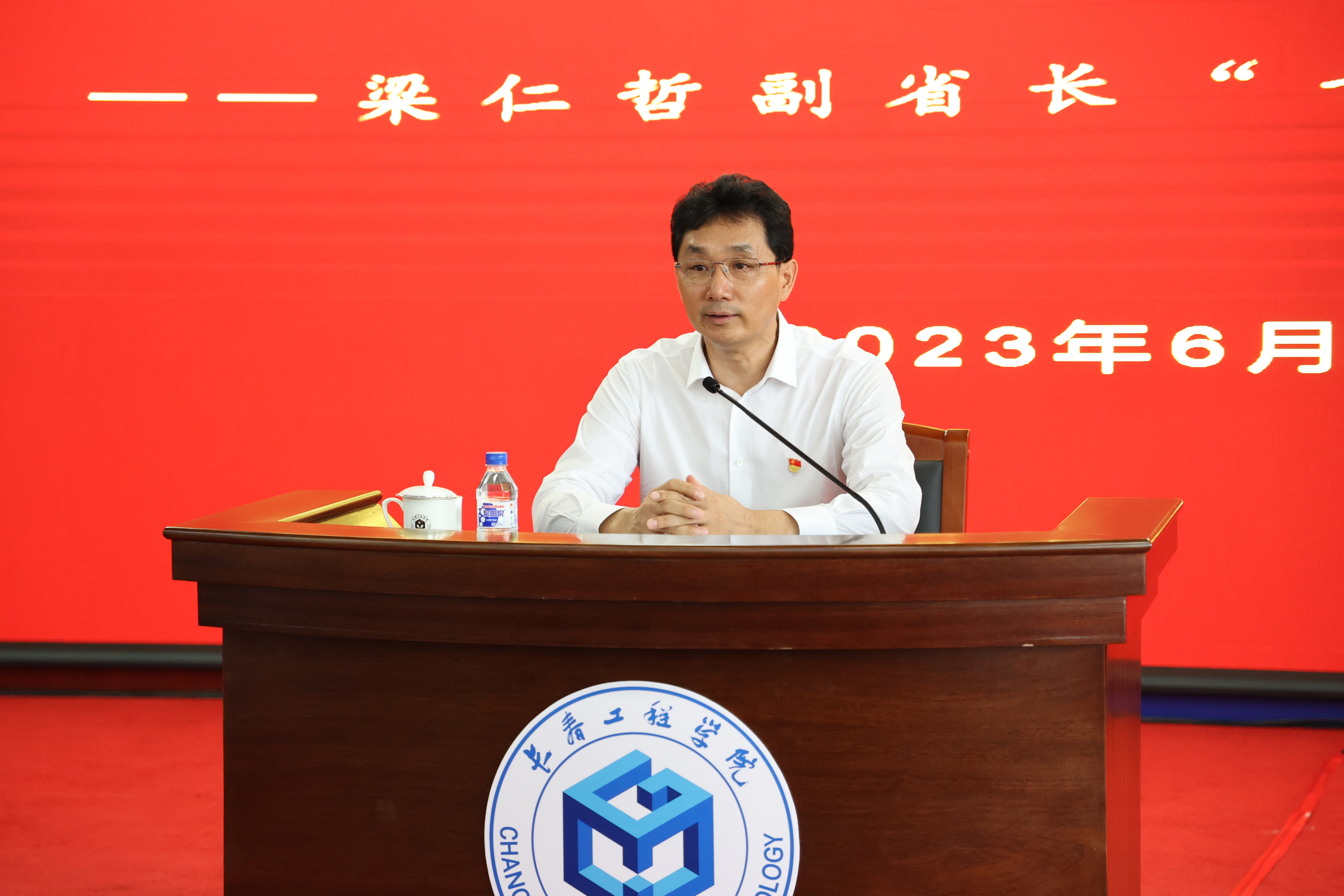 梁仁哲副省长从“坚定、清醒、奋发、有为”四个维度,用一个个鲜活生动的实例,带领师生们深度学习了习近平新时代中国特色社会主义思想中所蕴含的真理力量、历史传承和伟大自信,分析了当今国际国内面临的新形势、新矛盾、新战略、新任务,对新时代青年大学生投身中国式现代化建设、担当民族复兴大任提出了殷切期望,激励和鼓舞全校师生要“做习近平新时代中国特色社会主义思想最坚定的捍卫者,做推进中华民族伟大复兴最勇敢的搏击者,做推进中国式现代化建设最有力的推进者,做青年强则国强、青年志则国志最优秀的实践者”,为青年学生成长成才指明了方向,也为高校在新形势下办好人民满意的教育提出了科学具体的工作方法。