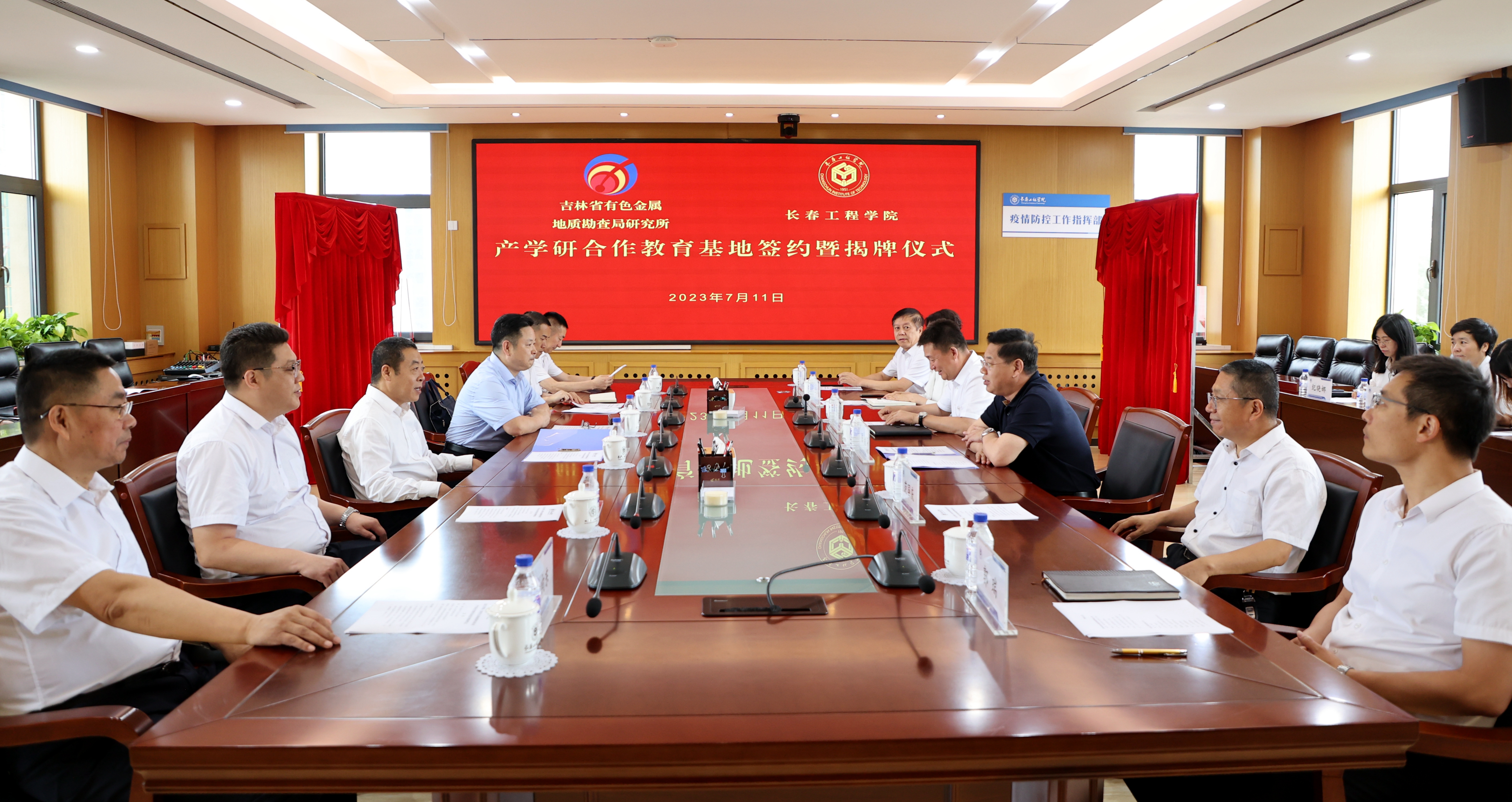 7月11日,乐鱼官网网页版_乐鱼(中国)官方与吉林省有色金属地质勘查局研究所共建产学研合作教育基地签约暨揭牌仪式在乐鱼官网网页版_乐鱼(中国)官方第二会议室举行。乐鱼官网网页版_乐鱼(中国)官方校长陈权、副校长张邦成,吉林省有色金属地质勘查局局长刘子军、副局长李春成参加了仪式。仪式由张邦成副校长主持。