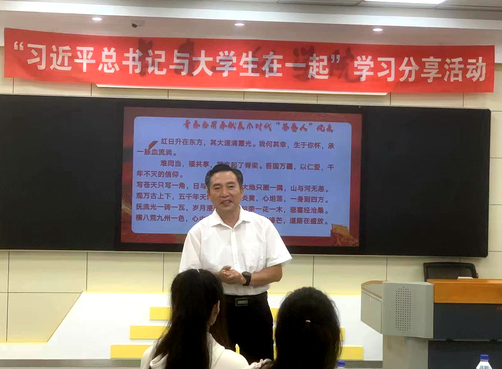 分享结束后,刘兆国副书记与学生们进行了亲切交流。他指出,通过开展本次学习分享主题班会,师生们深切体会到习近平总书记对青年学生和教育事业的谆谆教诲和殷切希望。他表示,此次主题班会质量高、效果好,设计精巧,内容紧扣时代主题,直击社会热点、正逢其时,达到了价值引领的目的;活动中,同学们发言积极,讨论热烈,发言内容体现了知识宽度、思想深度,表达了为强国建设、民族复兴发愤读书,不懈奋斗的远大志向。他希望长工程学子能够学有所获、学有所成,用自己的专业知识、专业技能为校争光、报效祖国。