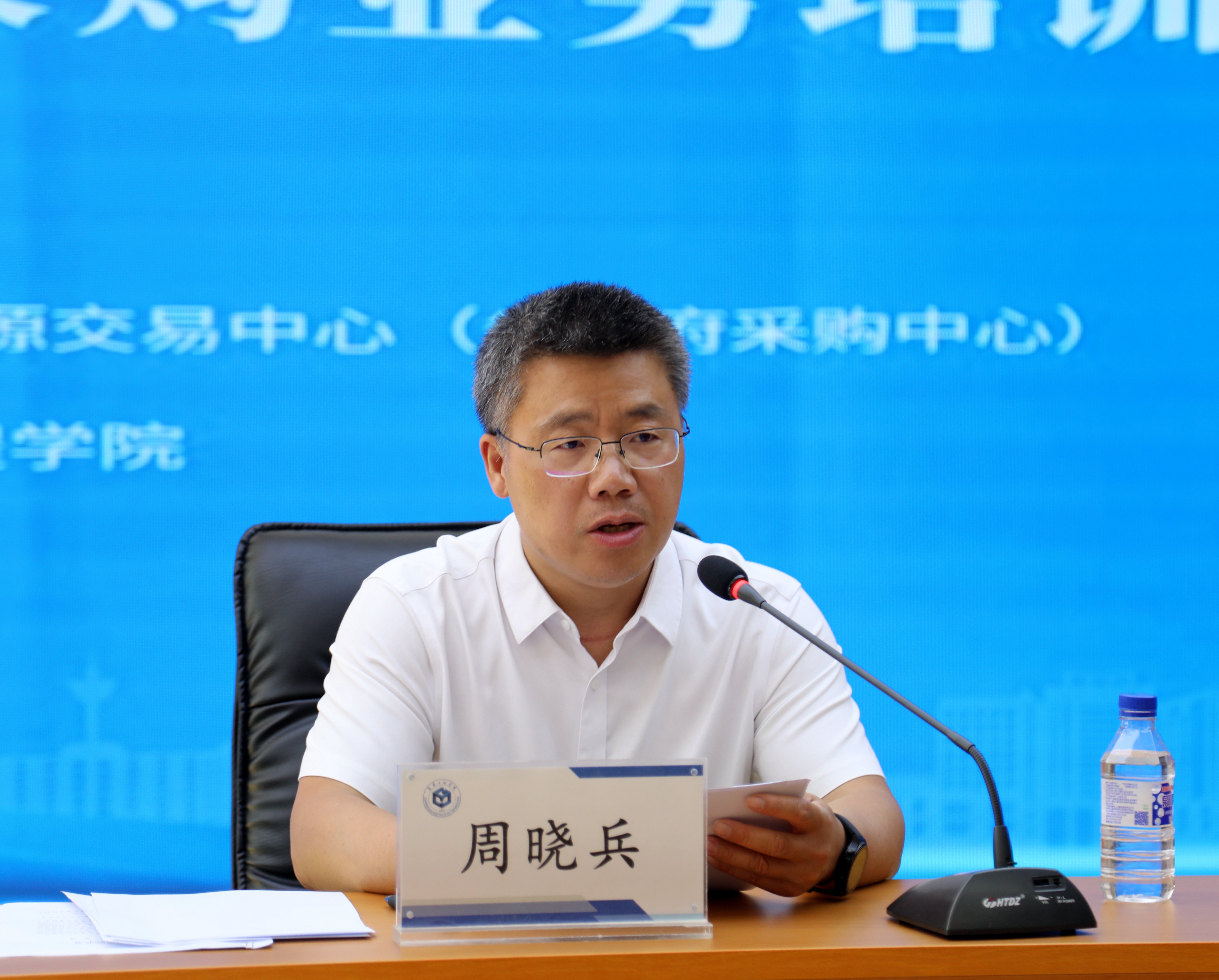 省政府采购中心副主任周晓兵在结业式上作总结讲话,他表示,这次省属高校政府集中采购业务培训班,圆满完成了预定任务、基本实现了预期目标,为省财政厅、省政府采购中心今后接续举办省直预算单位政府采购业务培训班、省市县三级政府采购中心工作人员培训班、政府采购社会代理机构从业人员素质提升班,积累了宝贵经验、提供了有益借鉴。