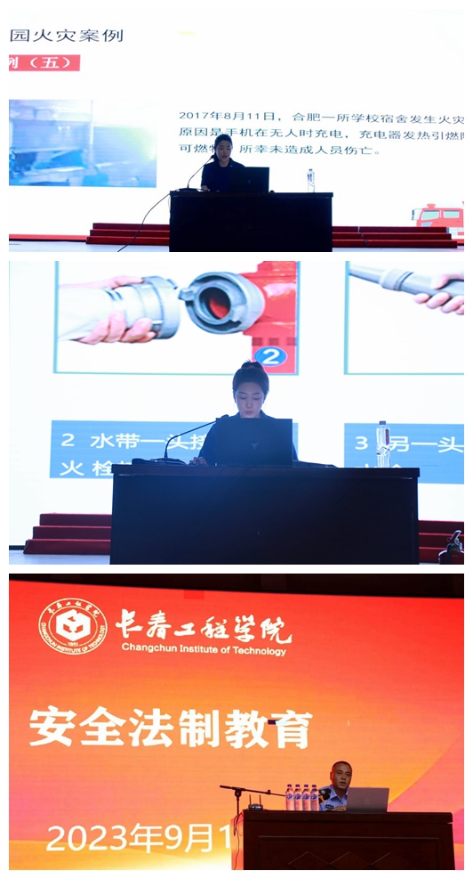 来自朝阳区消防救援大队的李雪、孙瑞迪和我校保卫处同志韩志权分别对同学们进行了校园安全法治教育。三位主讲人以生动的案例告诉同学们提高校园安全意识的重要性,引导同学们提高校园安全事件的应对能力。