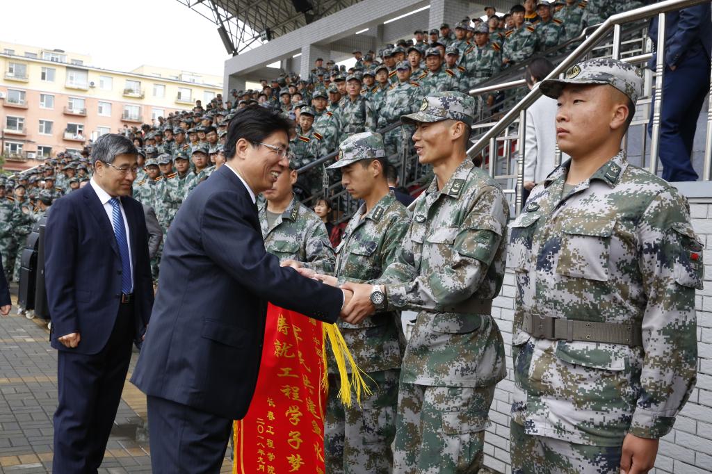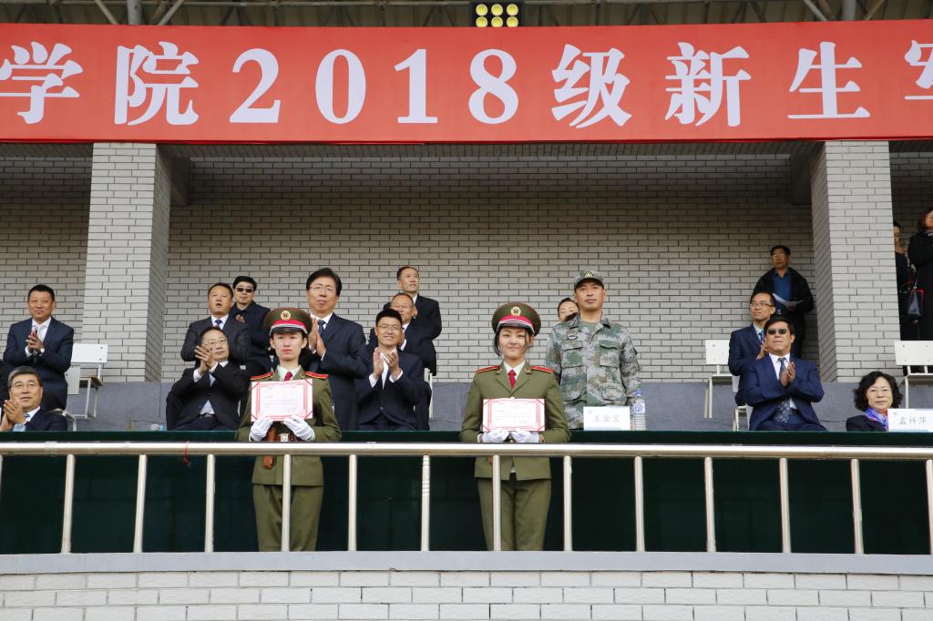 9月30日,我校2018级新生军训结业式在湖西校区体育场举行。党委书记潘福林、中国人民解放军某部队王金宝上校、党委副书记张冀男、副校长孟祥萍、副校长杨永生、副校长窦立军、副校长杨悦新等出席结业式。结业式由党政办公室主任张志杰主持。