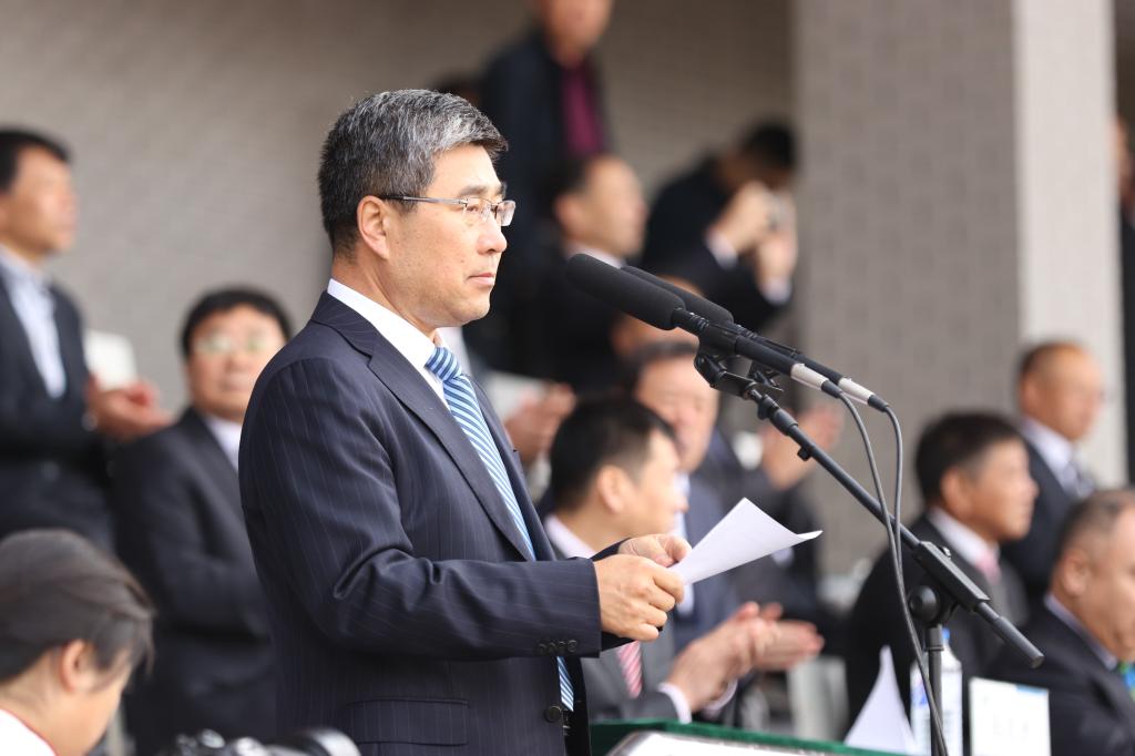 党委副书记张冀男在结业式上讲话。他首先向承训部队的首长和全体教官表示衷心感谢,并向经受了军训历练、圆满完成了军训课程的全体同学致以热烈祝贺。他表示,希望同学们在未来的学习、生活和工作中,继续保持在军训中表现出来的高尚的思想境界、坚韧的意志品质和良好的组织纪律性,继续弘扬团结合作的集体主义精神、顽强拼搏的奋斗进取精神,秉承“明德致远、笃行务实”的校训和“重教崇实、和谐创新”的优良校风,不断激励自己迈向新目标,实现新梦想,为把自己锻炼和培养成德智体美劳全面发展的应用型高级专门人才而努力奋斗。
