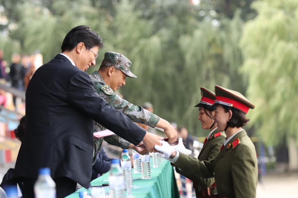 乐鱼官网网页版_乐鱼(中国)官方和部队领导为获奖方队和学员代表颁发了锦旗和证书。