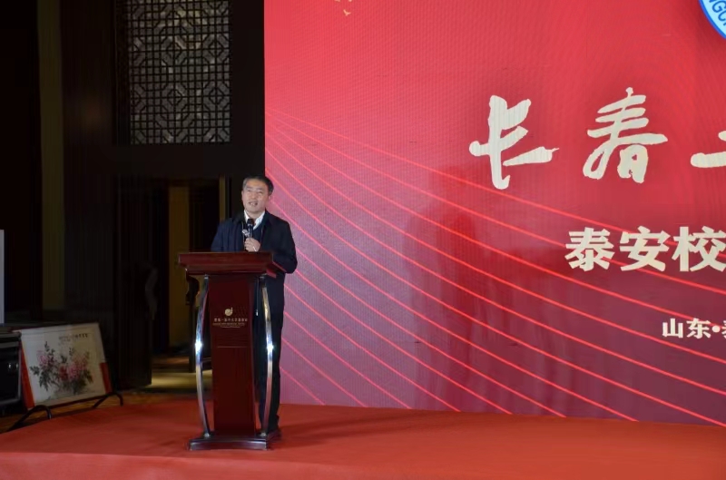 山东校友会会长张志穷代表山东校友会致贺词,希望泰安校友会在第一届理事会的带领下,密切泰安校友之间的情感交流,加强与母校之间的交流和联系,为母校的发展作出积极的贡献。