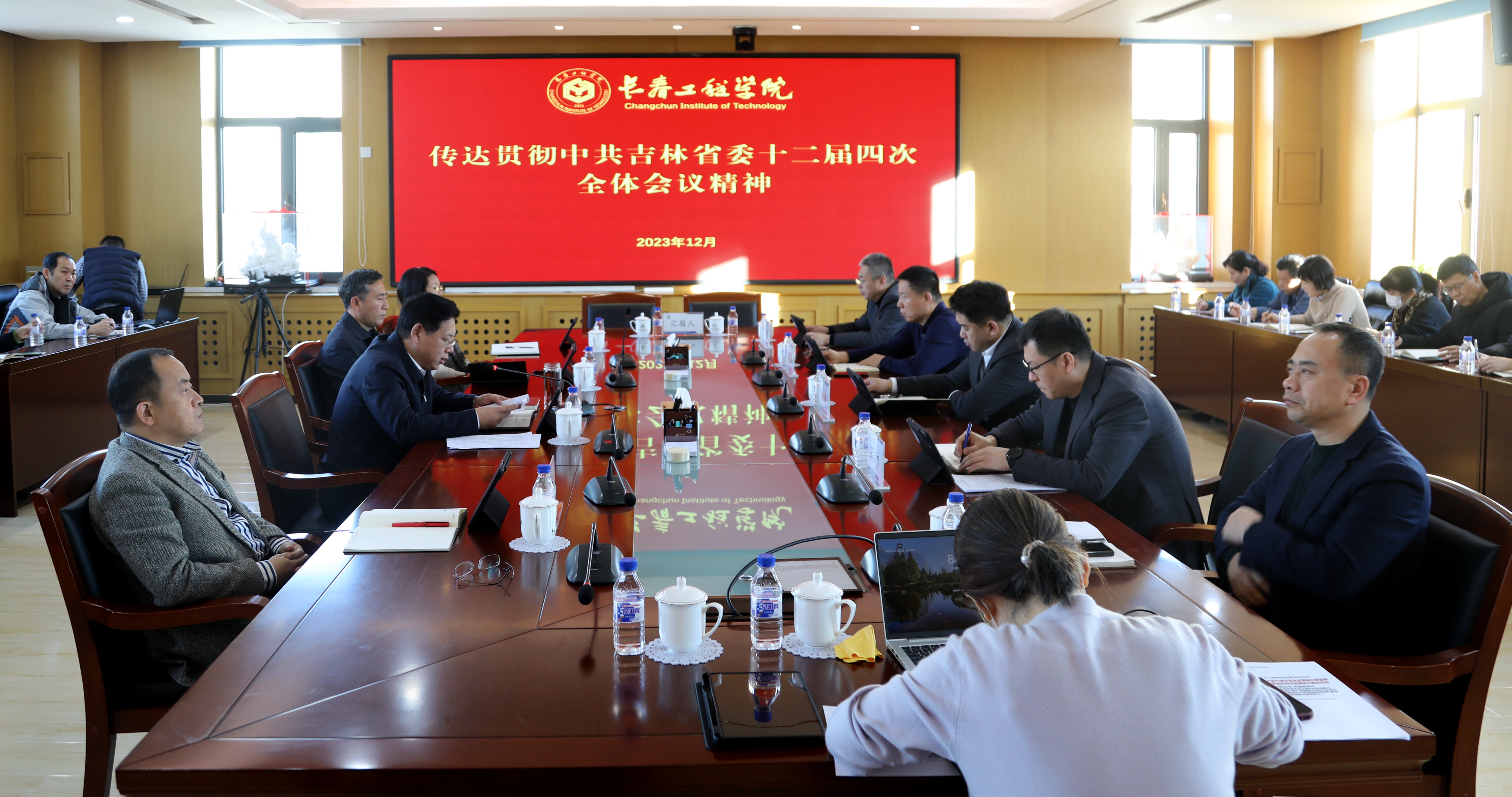 陈权书记就贯彻落实中共吉林省委十二届四次全体会议精神作出明确要求。他指出,我校作为全省应用型高校的排头兵,一定要认真学习贯彻好本次全会精神,深刻认识到新时代推动东北全面振兴的重大意义,充分认识吉林率先实现新突破的极端重要性和现实紧迫性,要切实承担起高校在振兴吉林方面所应该发挥的作用。