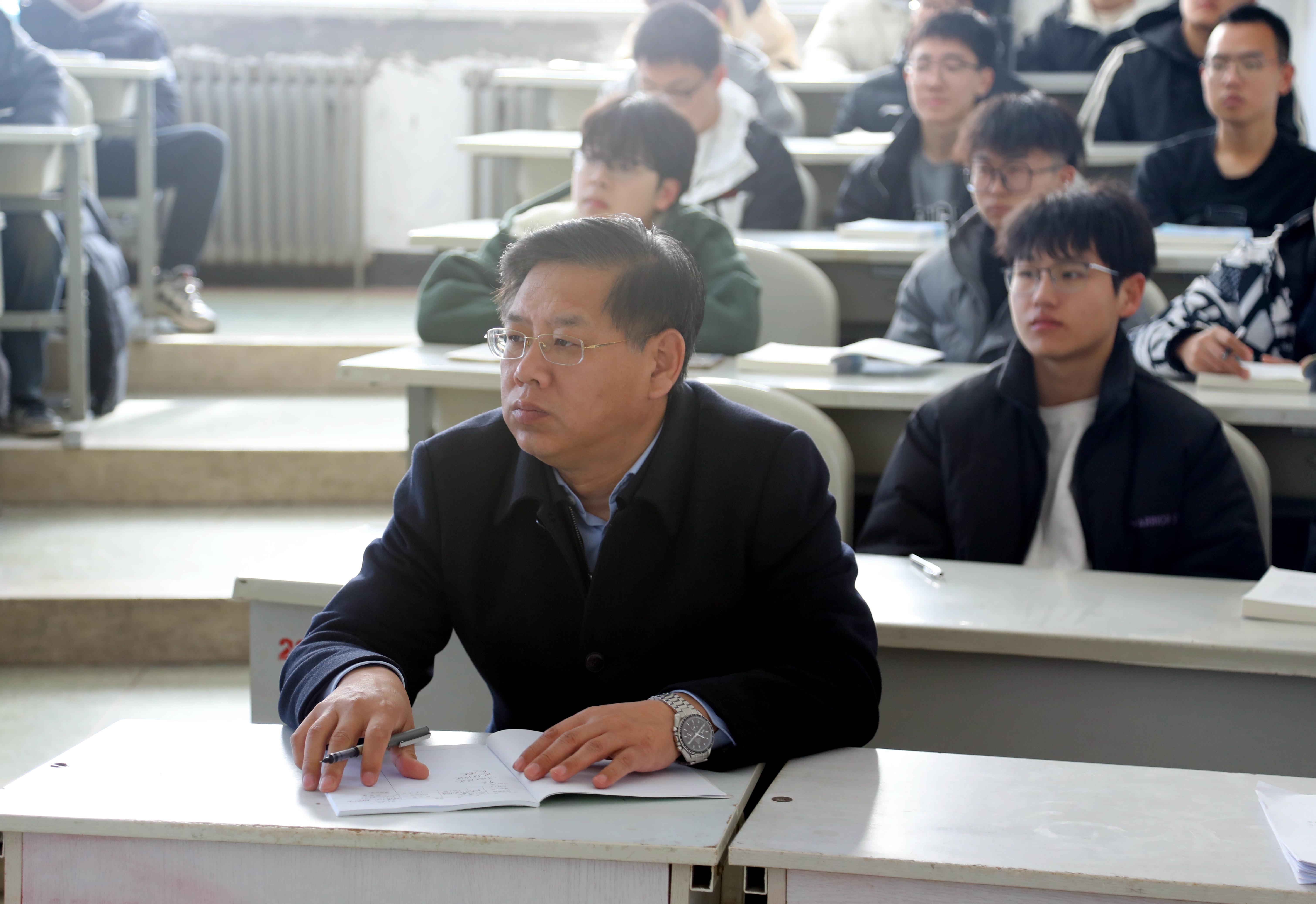 乐鱼官网网页版_乐鱼(中国)官方领导陈权、宋立军、刘兆国、杨永生、王延博、张邦成、许骏、韩威深入课堂,与同学们同上开学第一课。课堂上,乐鱼官网网页版_乐鱼(中国)官方领导们认真记录授课情况,细心观察学生的课堂表现,深入了解教情和学情。