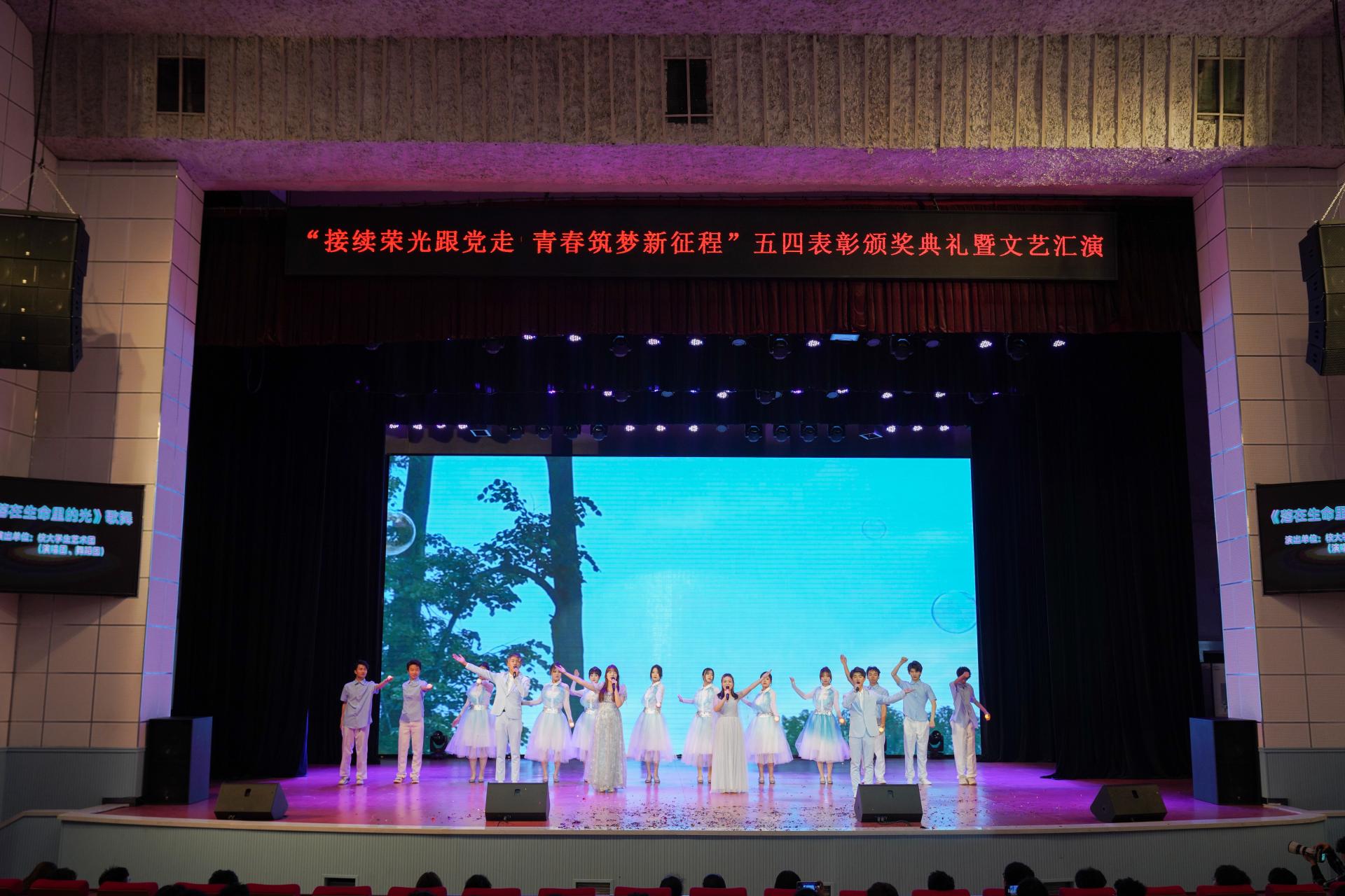 随后,同学们齐声唱响中国共青团团歌。在嘹亮的歌声中,颁奖典礼告一段落。