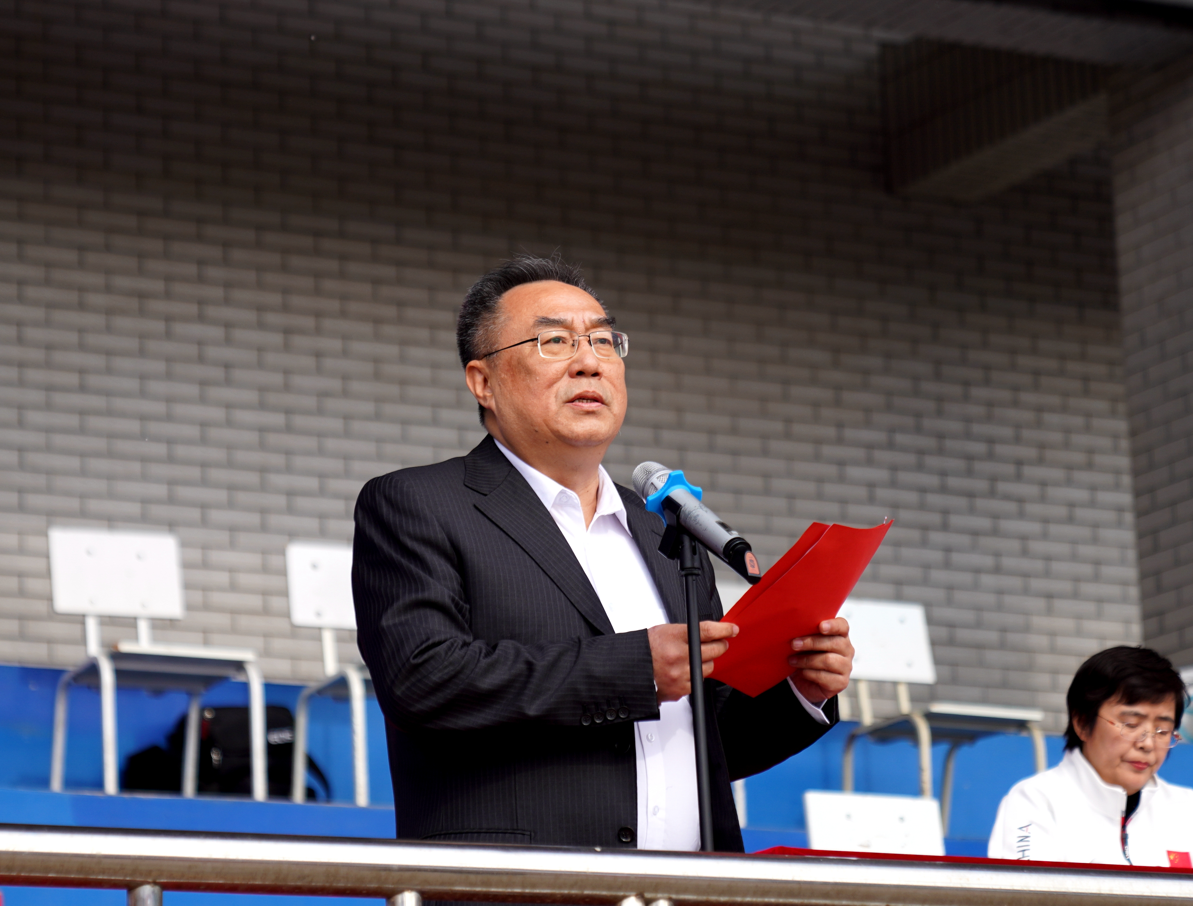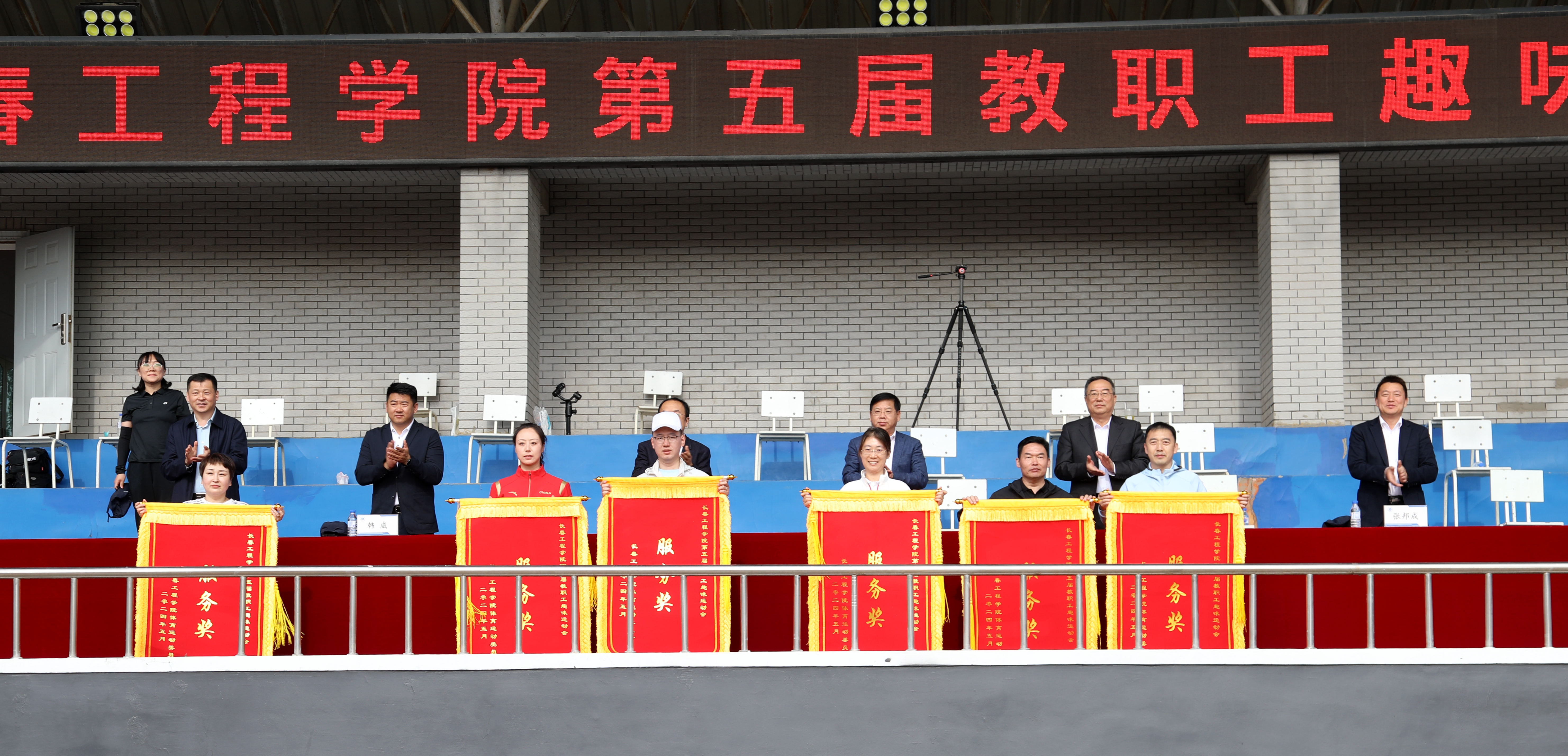 经过一下午的激烈比赛,第五届教职工趣味运动会进入尾声。在闭幕式上,运动会总裁判长于洪涛公布成绩;工会副主席温鹏宣读荣获“服务奖”名单。