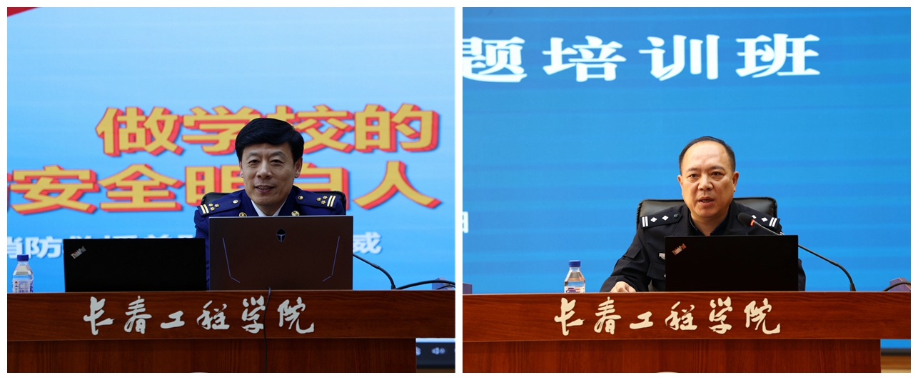 靳威总工程师以真实的火灾案例为切入点,从校园火灾的风险、危害、预防、逃生知识等方面进行了系统、全面、深入的讲解;王浩大队长从高校突发事件的成因、主要特征、处置和预防等方面进行了详细讲解。