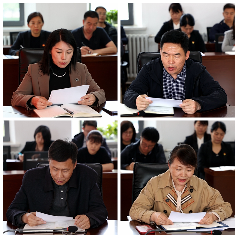 在会上,机关党委书记高轶鹏、后勤党委书记崔玖力、机电工程学院党委书记王利涛和电气与信息工程学院党委书记郑文围绕开展党纪学习教育的经验做法依次进行了交流发言。