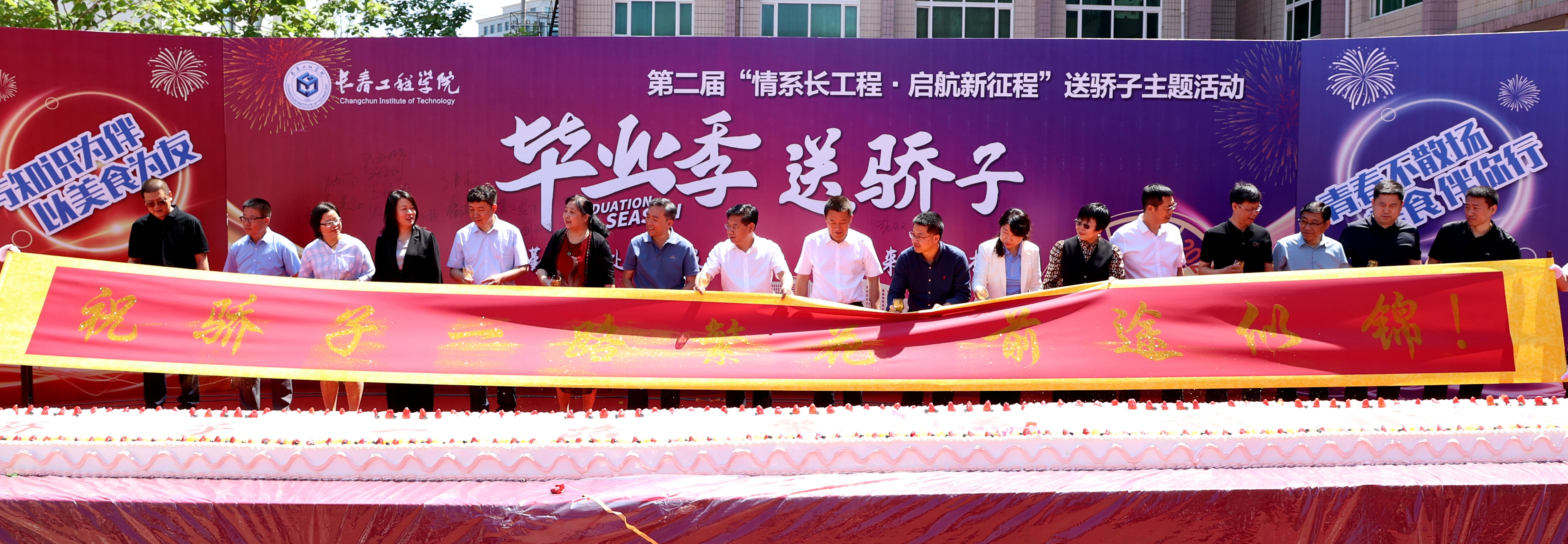 现场举行了洒金仪式,乐鱼官网网页版_乐鱼(中国)官方领导、各学院领导洒下金箔覆上条幅,“祝骄子一路繁花 前途似锦!”的温馨祝福也在阳光下熠熠生辉。饮食服务中心为毕业生们特别定制了长达10米的蛋糕,乐鱼官网网页版_乐鱼(中国)官方领导、各学院领导亲自为同学们切分了蛋糕,希望大家在今后的人生旅程里步步“糕”。