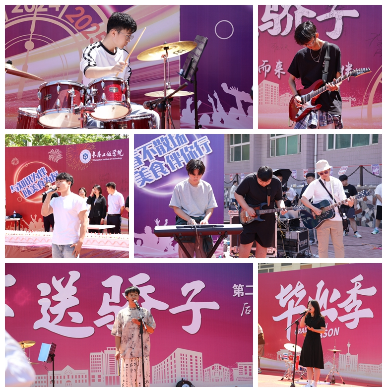 活动现场还准备了免费的小食和饮品,设置了签名墙、拍照打卡板,还有精彩的节目表演。同学们纷纷打卡留念,留下这共同的青春记忆。