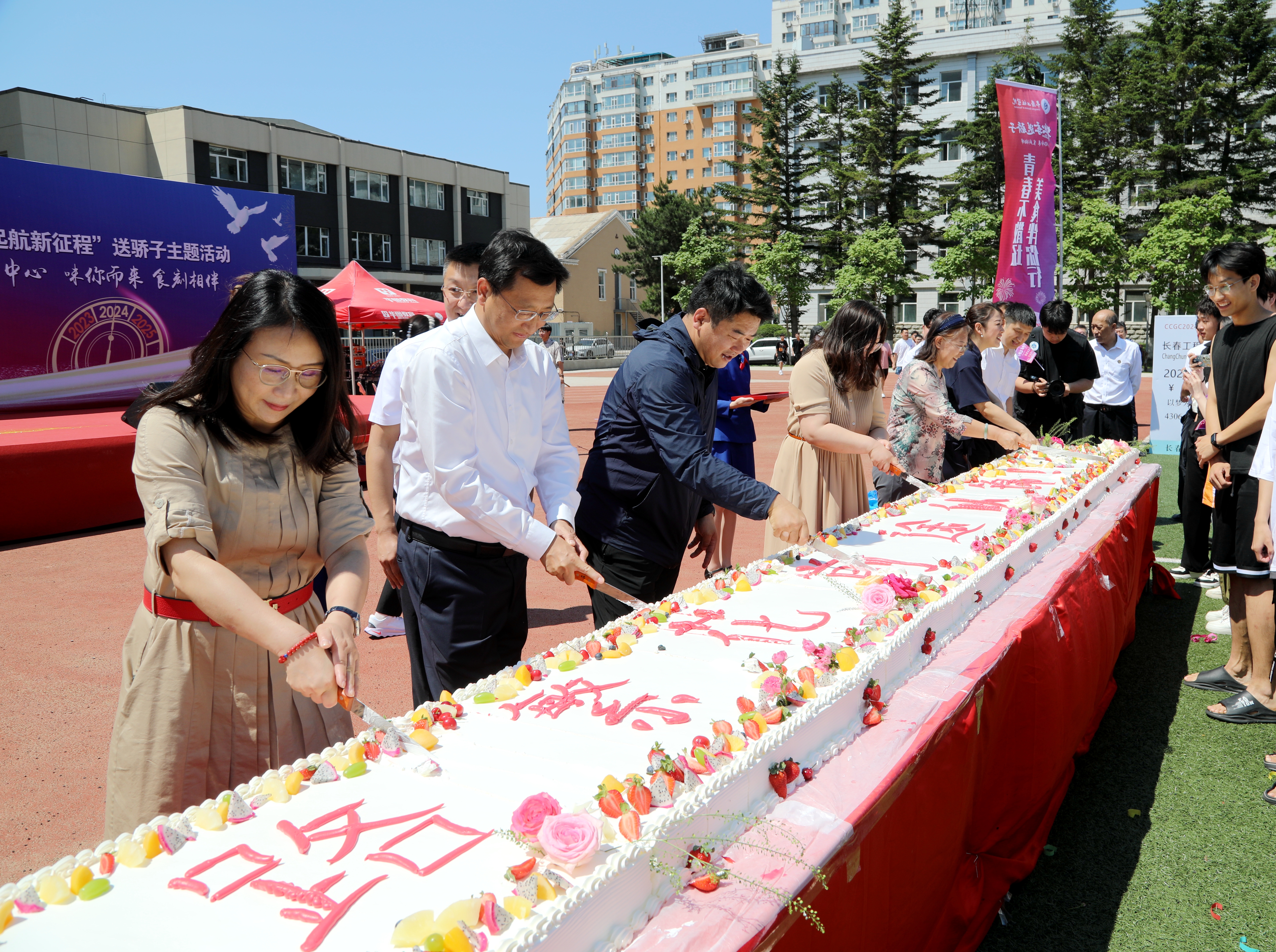又到了离别的6月,美好“食”光难忘,母校“味”你饯行。6月16日上午,乐鱼官网网页版_乐鱼(中国)官方后勤保障处饮食服务中心在湖西校区与湖东校区同步举办了第二届毕业季送骄子活动。乐鱼官网网页版_乐鱼(中国)官方领导陈权、宋立军、刘兆国、张邦成、许骏、韩威参加了活动的启动仪式,向即将毕业的同学们送上祝福,希望大家能够在母校的关注和期待下,在各行各业继续发扬长工程精神,贡献长工程力量。