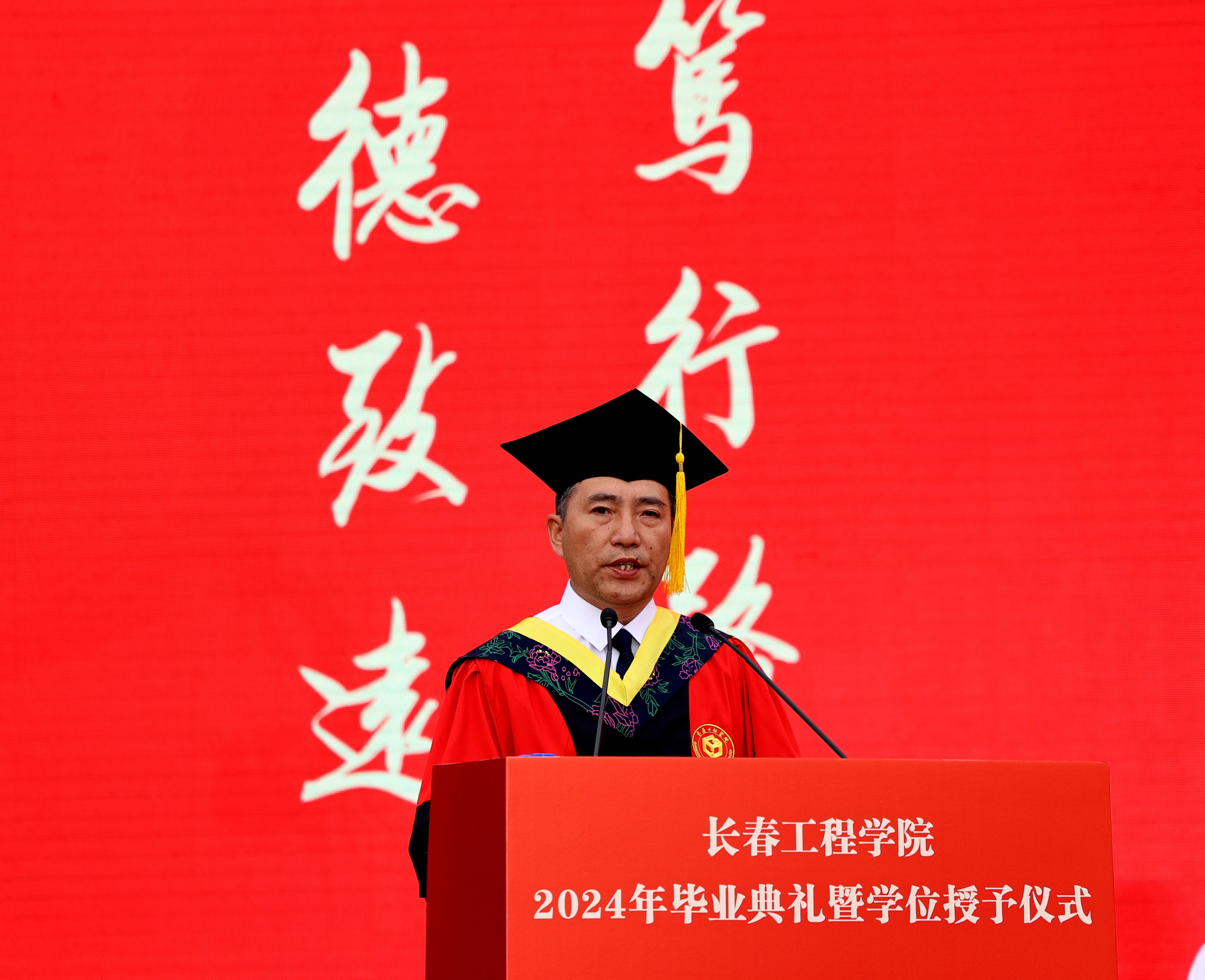 他向毕业生同学们提出三点希望,一要坚持“立德”为先,始终做一名德才兼备之人。百行以德为首,做人以德为本。希望未来的你们,能带着长工程这份温暖、包容和情怀,做一个思想有厚度、眼界有高度、人品有温度、专业有深度的优秀人才。二要坚持“立志”为基,始终做一名志存高远之人。立志,方能成才,立大志,才能行稳致远。希望同学们将年华汇进时代旋律,把青春融入祖国山河,在复兴征程中找准定位、找到舞台。三要坚持“立业”为要,始终做一名勤勉敬业之人。当前,面对人工智能技术的快速发展,越来越多的工作将被机器取代,这就需要大家始终持有一颗好奇心,主动学习新事物、新知识和新技能,主动适应新技术的发展,善于运用各类工具,不断增强自身的竞争力,努力在激烈的竞争中立于不败之地。