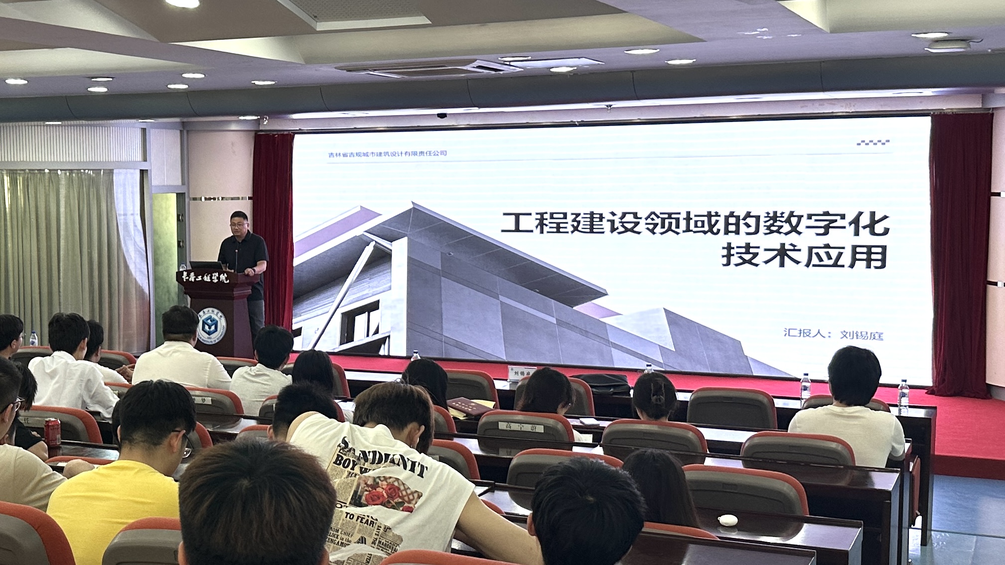 吉林省吉规城市建筑设计有限责任公司副总建筑师、城乡建设数智所所长刘锡庭为学生们作题为“工程建设领域的数字化技术应用”的专题报告。