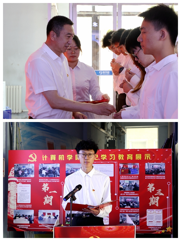 大会在庄严的国歌声中拉开序幕。为鼓励新党员赓续党的光荣传统,计算机技术与工程学院党委书记秦忠为新发展党员佩戴党徽。