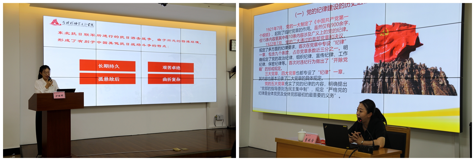 吉林杨靖宇干部学院教师围绕“东北抗联抗日斗争的启示”和“《中国共产党纪律处分条例》解读”进行专题授课。