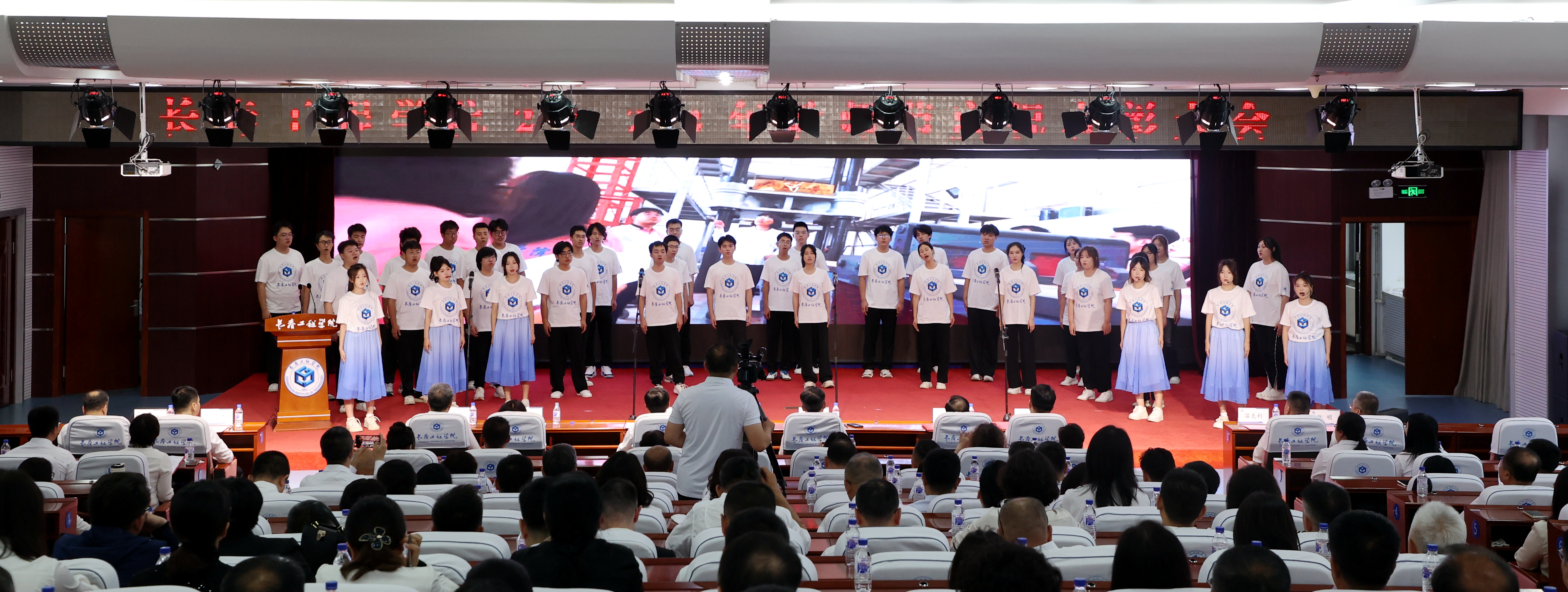 大会正式开始前,播放了“跬园最美教师”视频,讲述了评选出的10位2024年度“跬园最美教师”的育人故事,展现了他们学为人师、行为世范的崇高精神,激励全校教职员工见贤思齐、踔厉奋发,也让表彰大会现场的气氛喜庆热烈。学生代表献上合唱《燃烧》《老师,我想对您说》,用歌声表达对老师们的感谢与祝福。