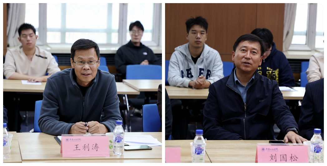 机电工程学院党委书记王利涛、党委学生工作部部长刘国松结合自身学习、工作的经历与大家进行了交流。