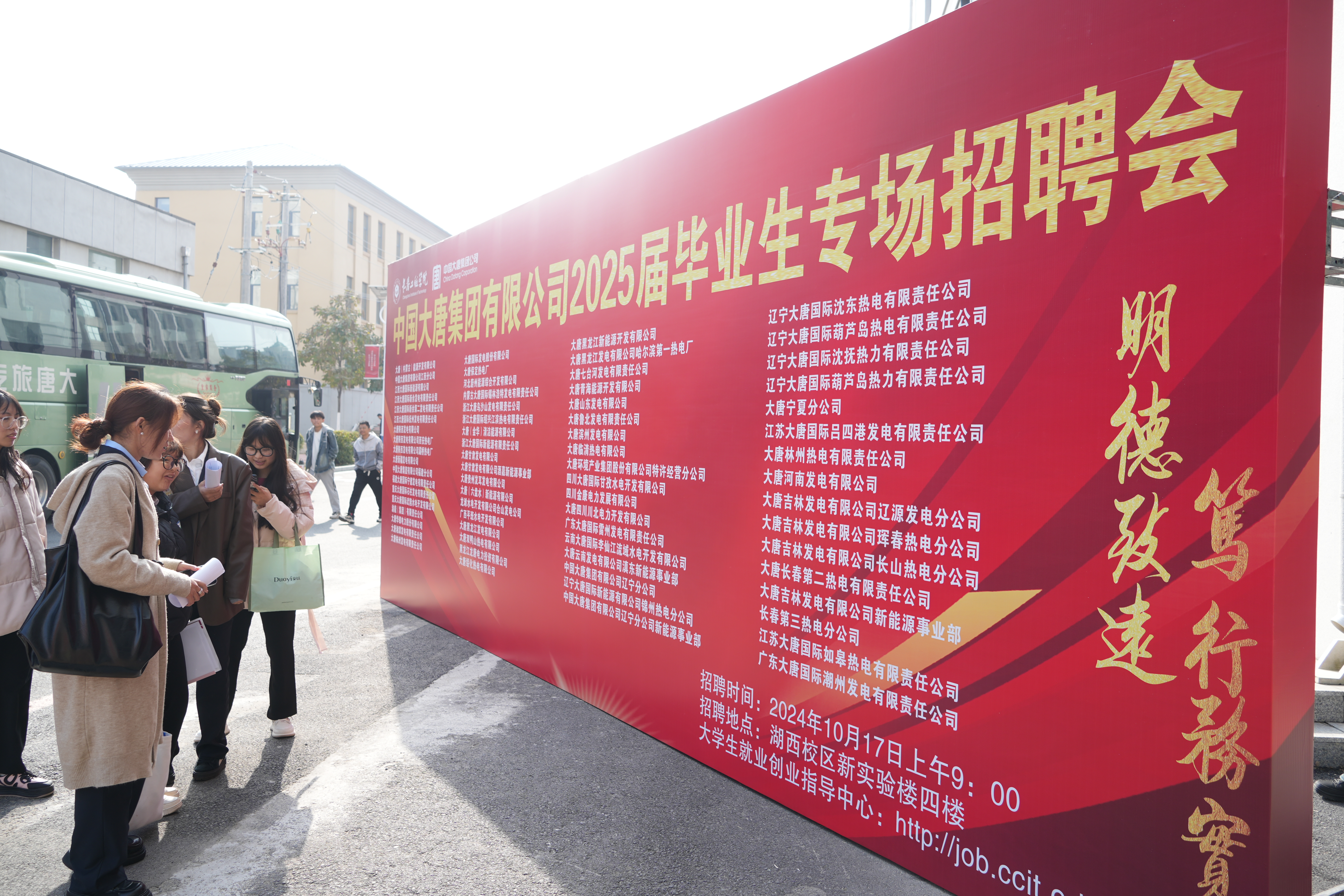 秋风送爽,硕果飘香。时隔一载春秋,我校迎来了中国大唐集团有限公司专场招聘会,会议于10月17日上午在湖西校区新实验楼前举办。