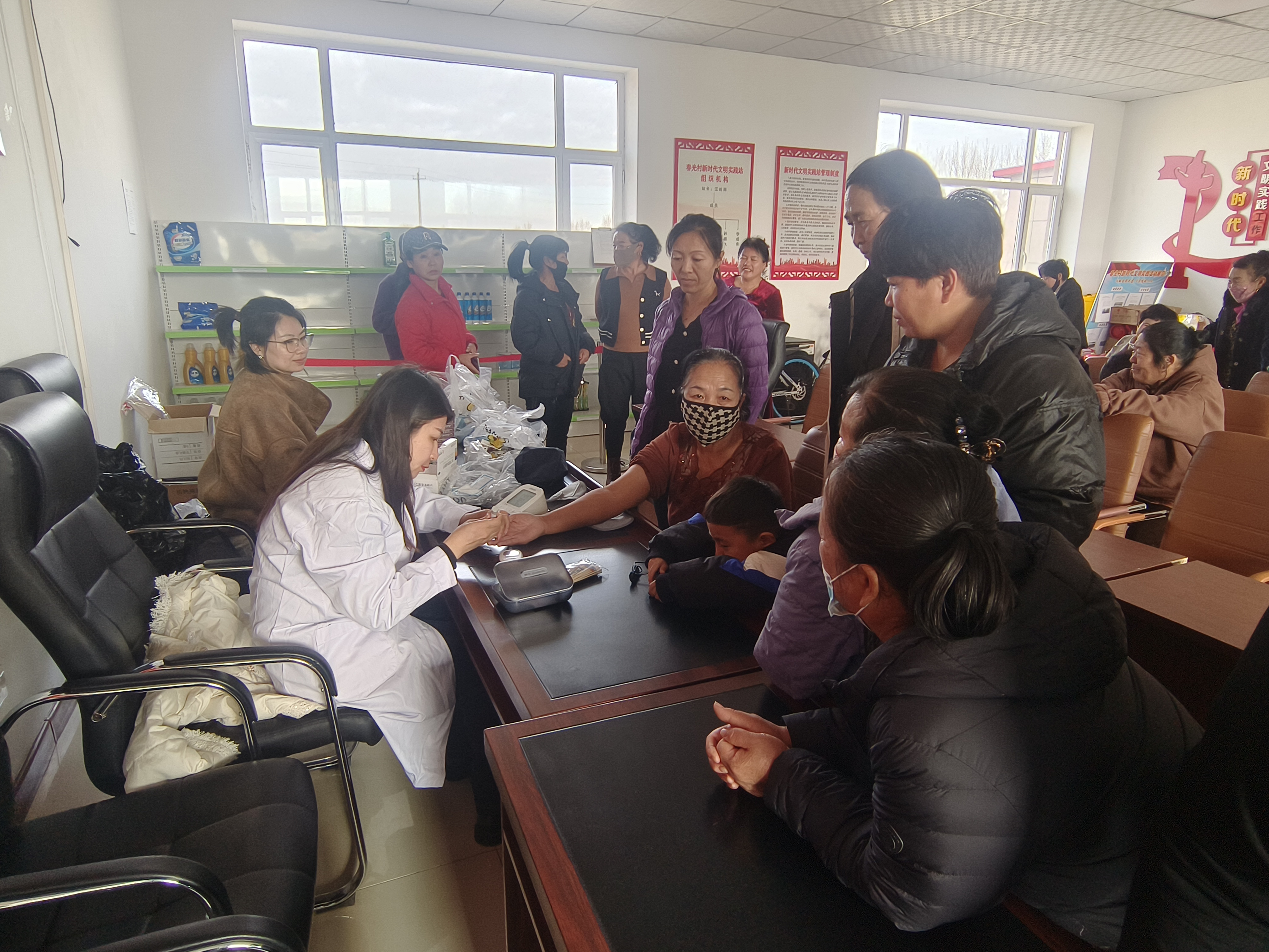 巾帼志愿服务团队为包保村妇女们开展了常见病义诊活动,耐心为包保村的妇女们解答各类常见病的相关问题,为她们测量血糖血压,并捐赠了药品。