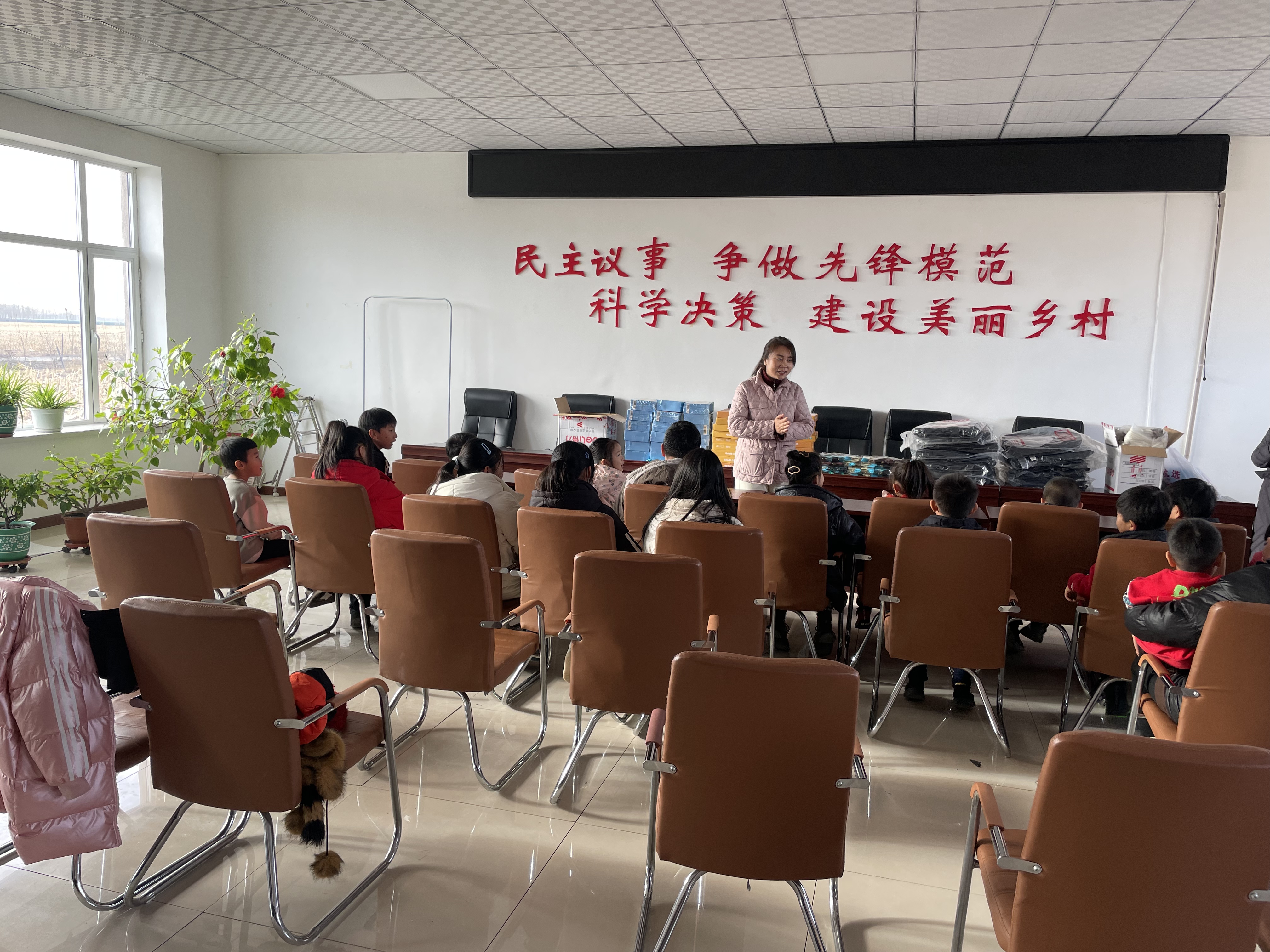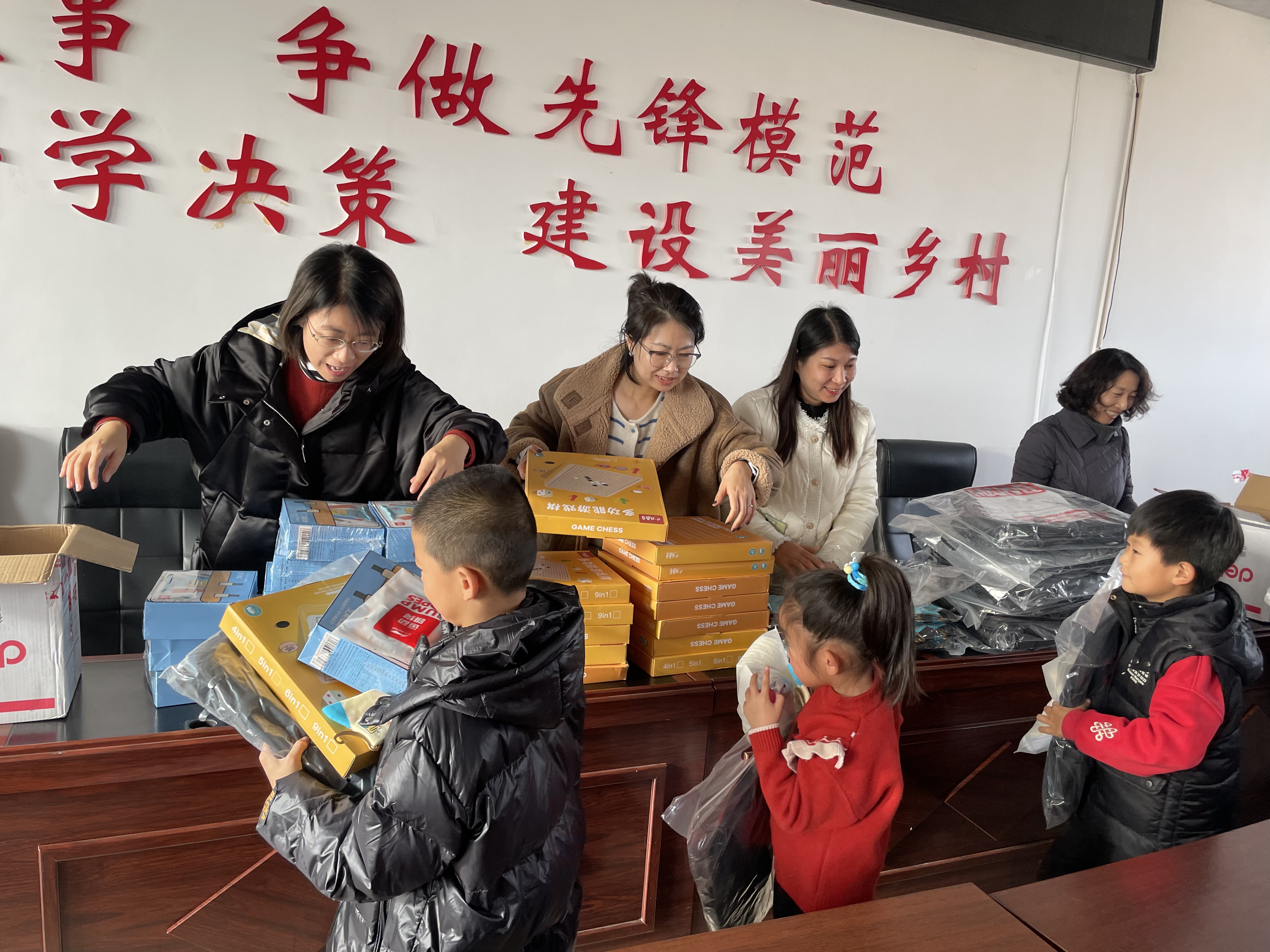 志愿服务团队为包保村的孩子们准备了学习用品、益智玩具、手套帽子袜子等保暖物品,在寒冷的冬日为孩子们送上开心和快乐。