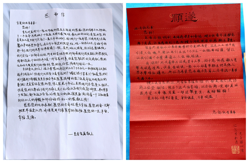 被捐献者家属寄来了亲笔书写的感谢信,深情写道,“虽然我们与您素不相识,但是您的义举给了我们生命之光!无论以后我们走到哪里,取得多少成就,都永远不会忘记血液里面流淌着一个不知姓名的好心人的骨髓和那份始终如一的感激之情!”