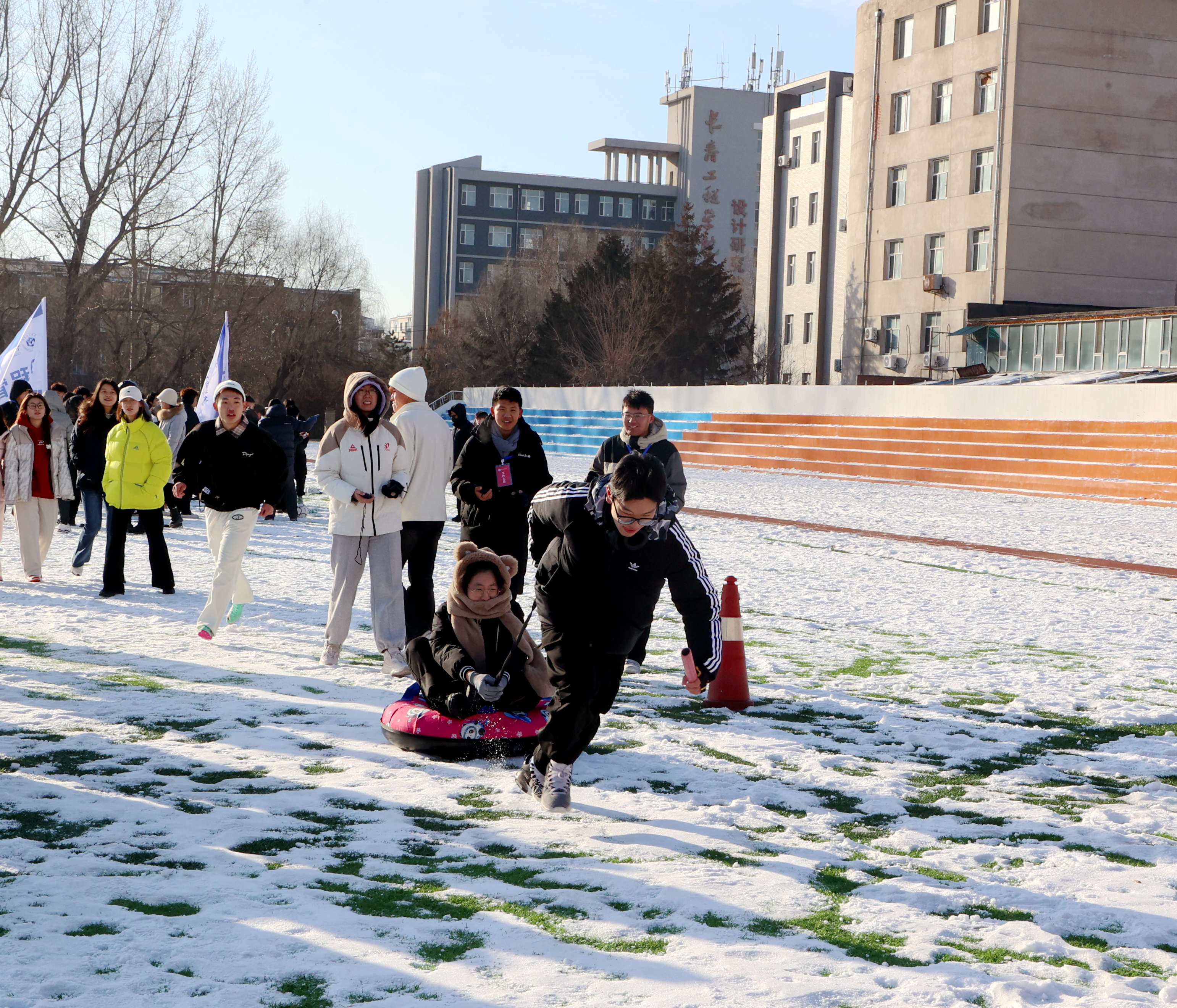 此次运动会共有雪圈竞速、毛毛虫竞速、运转乾坤、财源滚滚、足球踢准、八仙过海、雪地拔河七个项目。