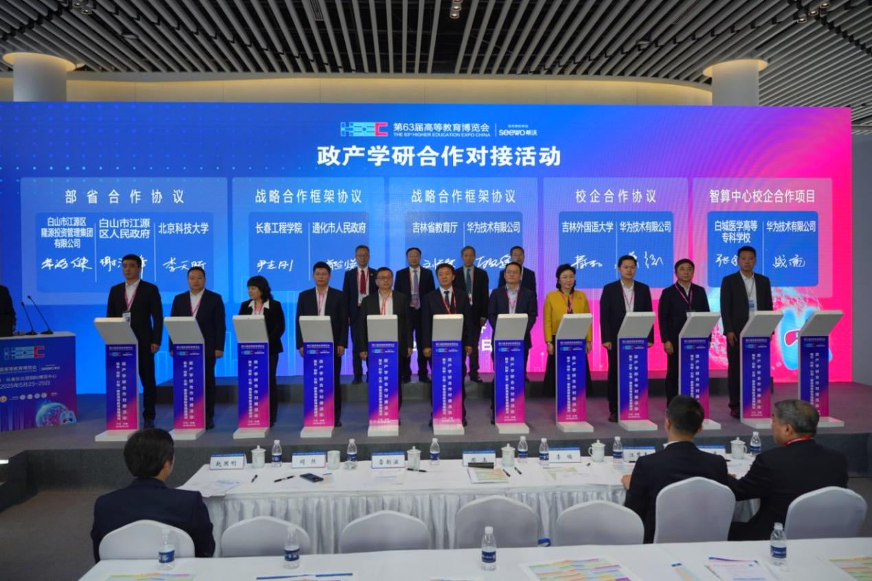 政产学研签约合作对接活动中,我校与通化市人民政府、中国水利水电第一工程局有限公司、中电信量子信息科技集团有限公司北方分公司签订战略合作框架协议,围绕人才共育共享、核心技术攻关、科技成果转化等方面开展深度交流合作,以政产学研融合创新发展赋能教育强国建设。